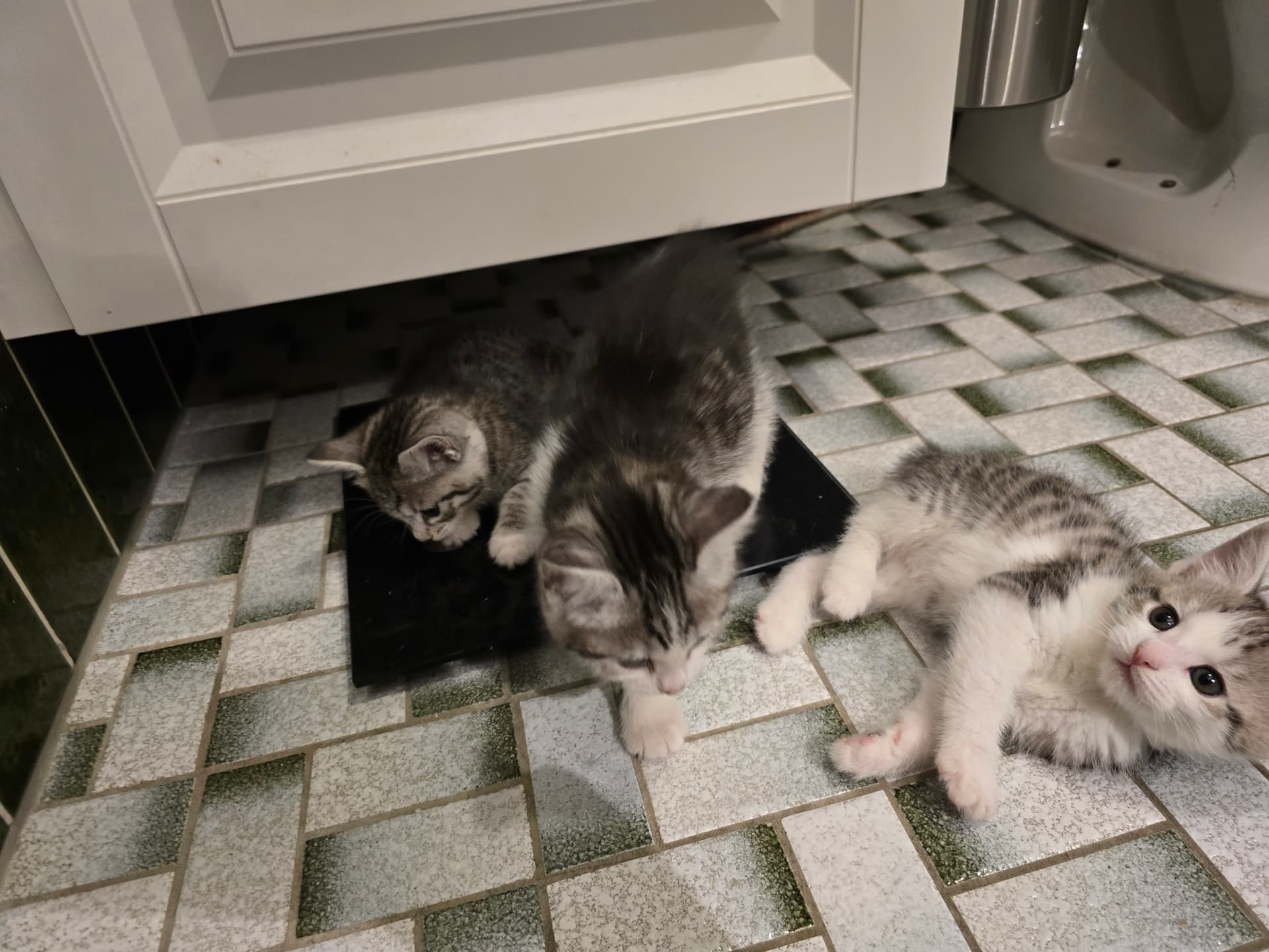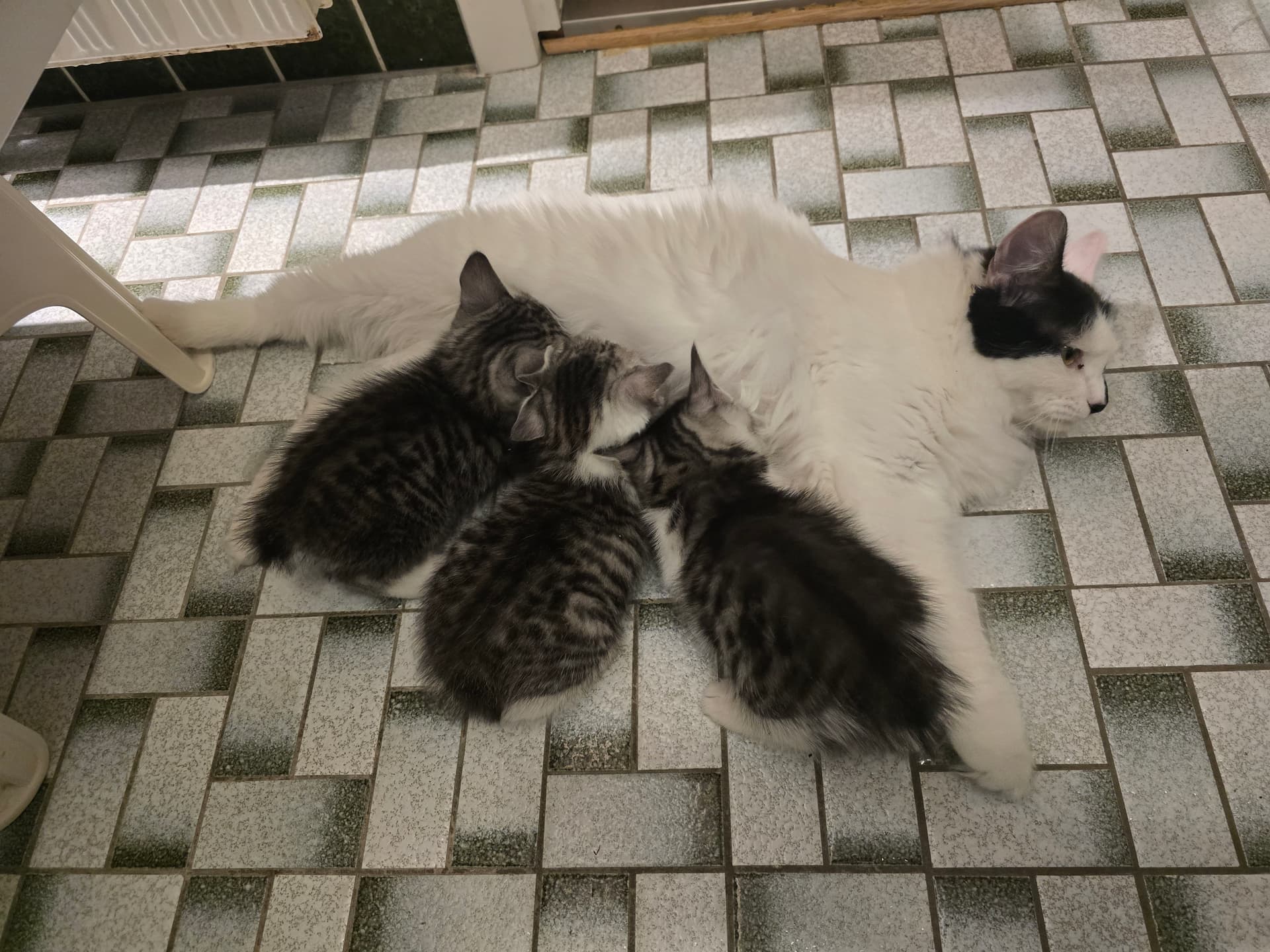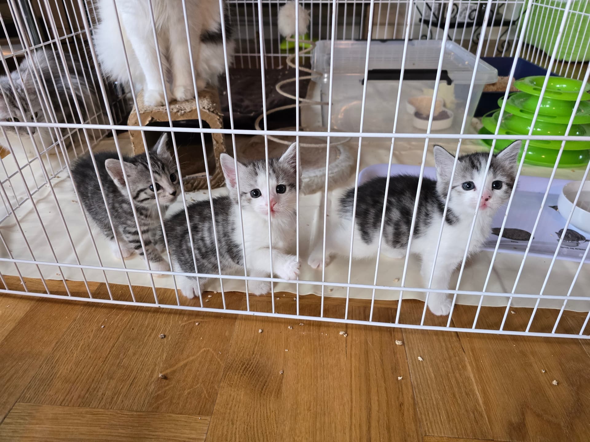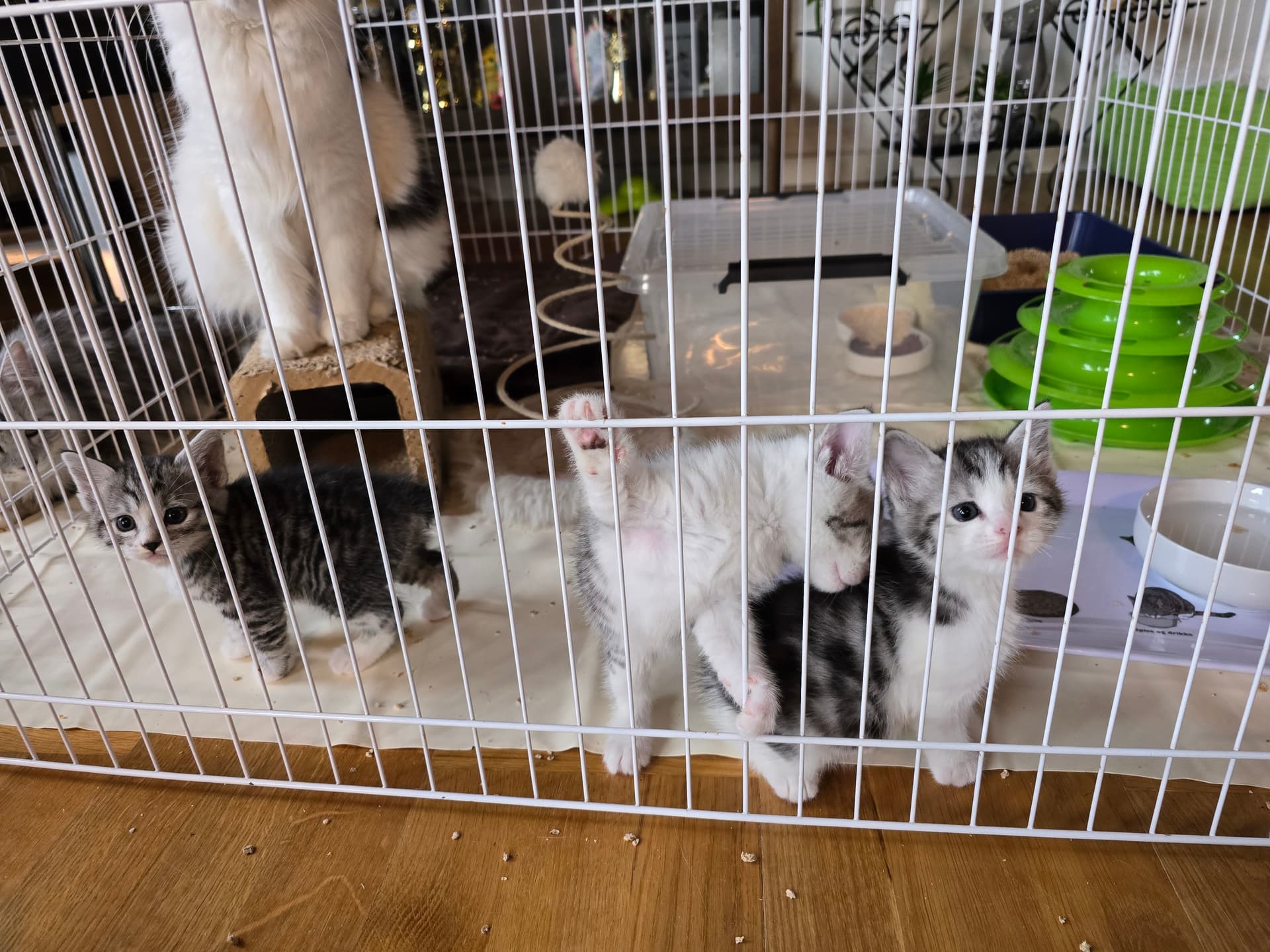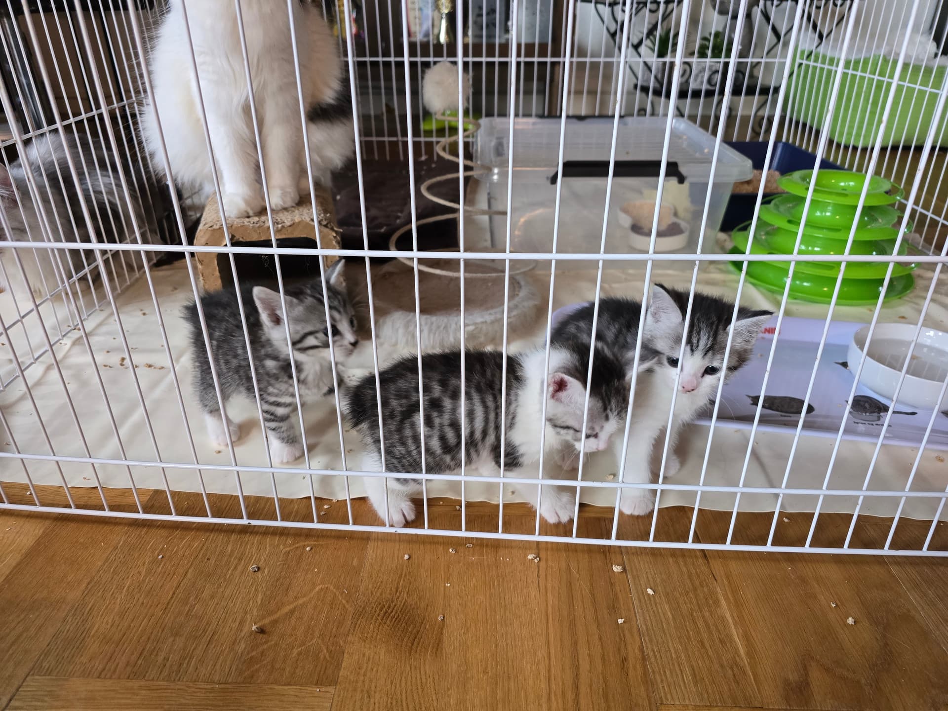 nu er de 5 uger og hjælper med flittig med den daglige rengøring i kravlegården