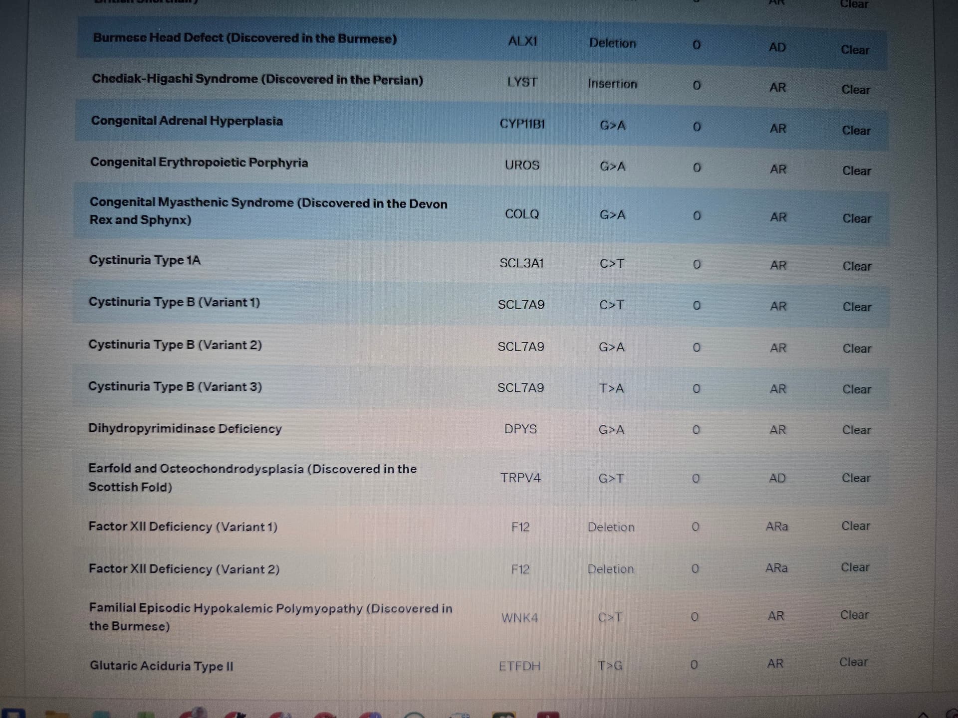 Two copies of the Factor XII Deficiency (Variant 2) variant are needed for a cat to be affected by this condition, so Seiko should not show signs due to this variant. Please note, a cat having 1 copy of Factor XII Deficiency (Variant 1) and 1 copy of Factor XII Deficiency (Variant 2) will not cause Factor XII Deficiency. However, similar clinical signs could develop due to a different genetic or clinical cause.