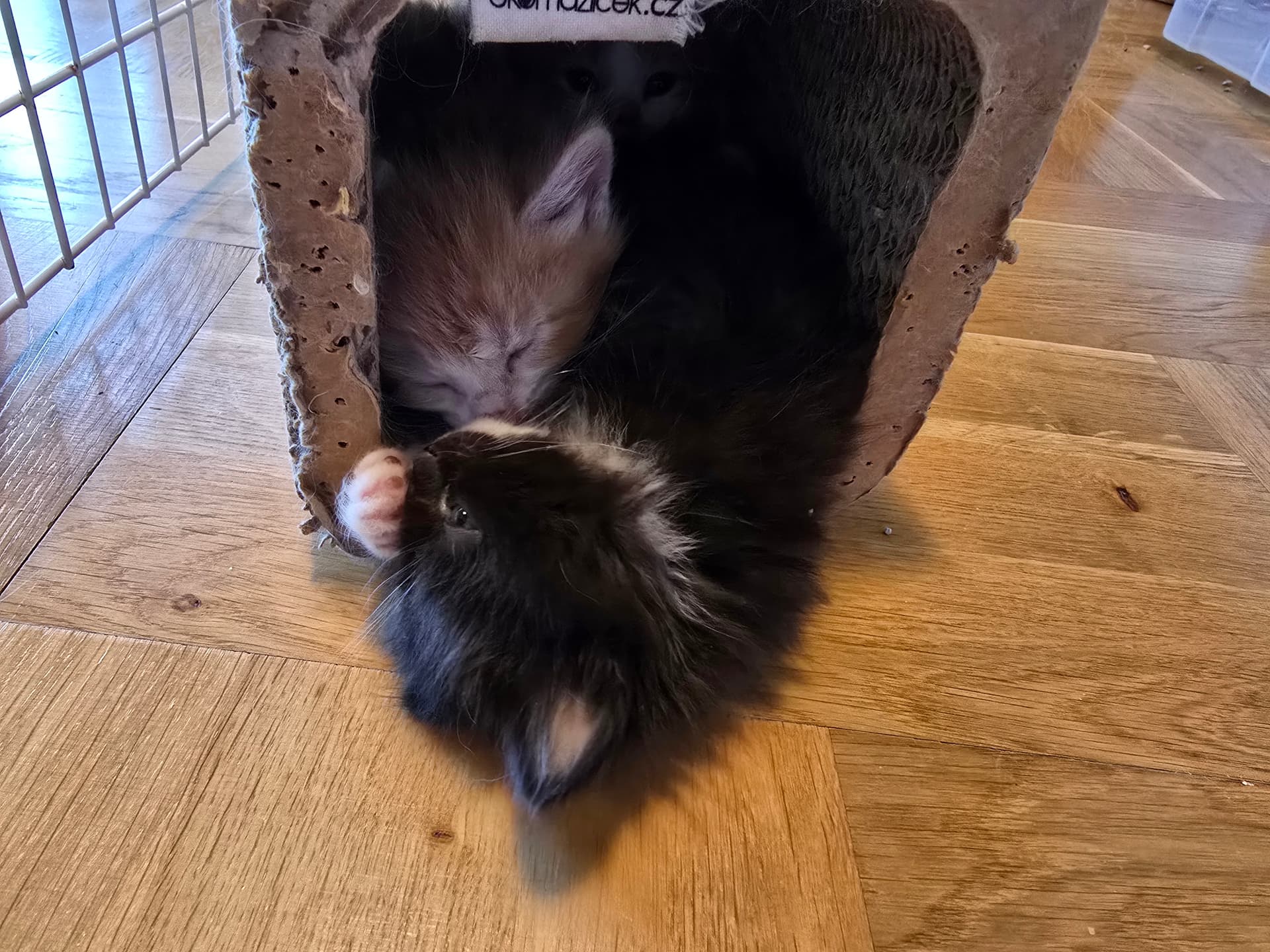 De stortrives og alle spiser selv. De tre røde kan kun være drenge, har faktisk ikke tjekket den sorte om vi har taget fejl