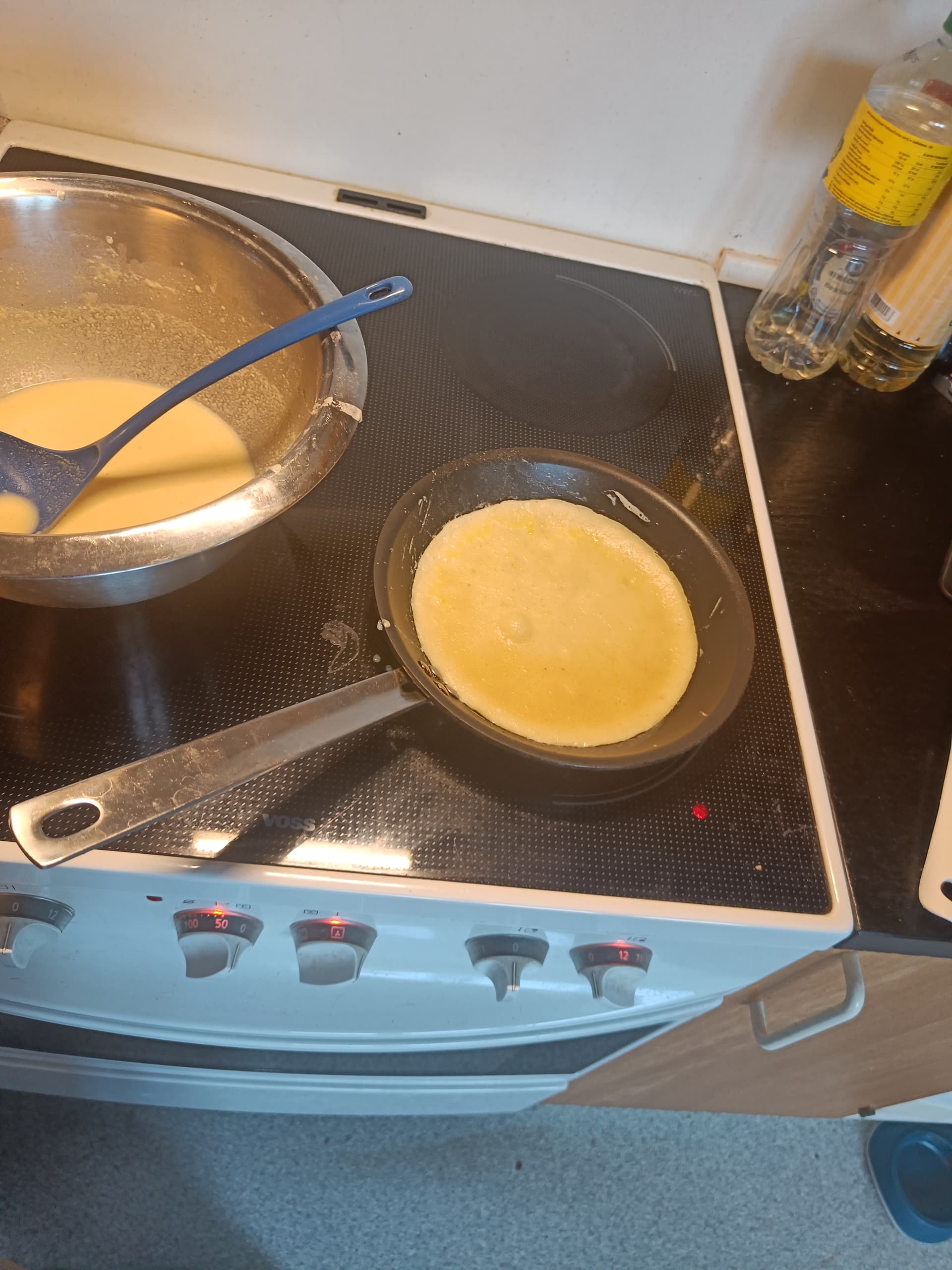Lørdag lavede jeg en æggekage med 250 g stegte skivede mark champignon, og rugbrød til.