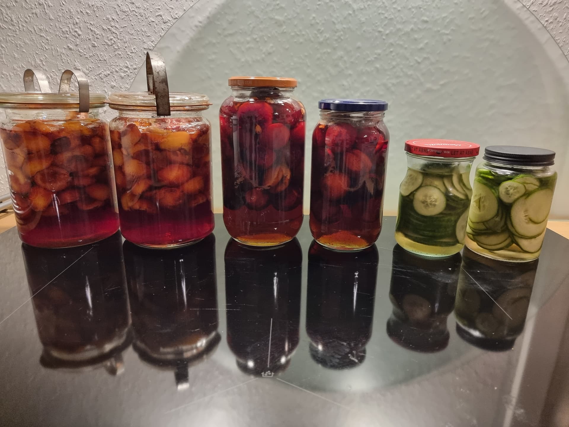 I går fik jeg lavet henkogte blommer, agurkesalat. Blommer i maderia skal røres daglig i 3 dage og bindes til på 4 dagen