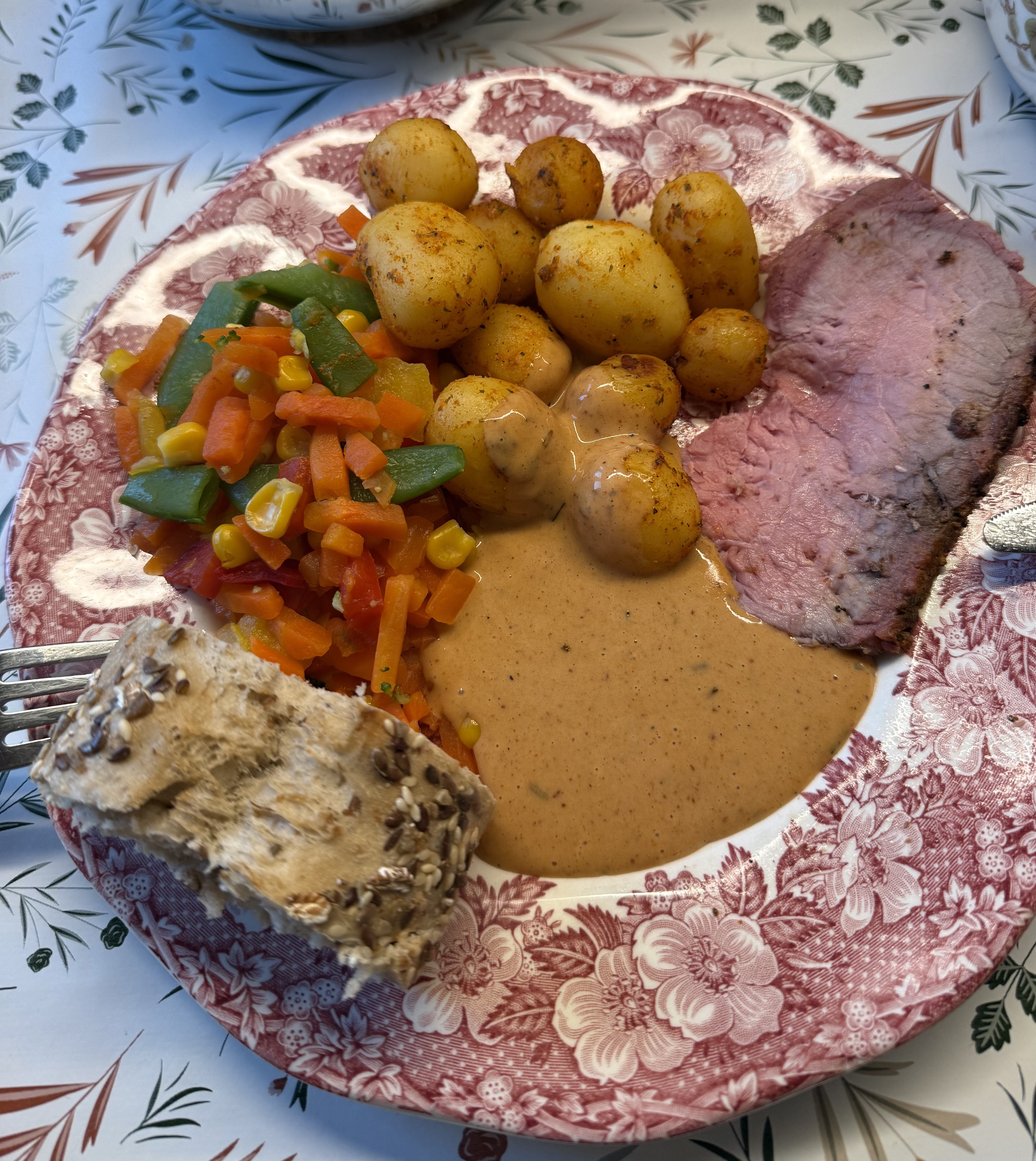 Jeg spiste brunch med min datter tidligere i dag, så aftensmad blev en rugbrød med min hjemmelavede leverpostej. I morgen skal jeg have helstegt rødspætte med nye udenlandske kartofler og persillesovs. Lykke er at have en søn der er lystfisker