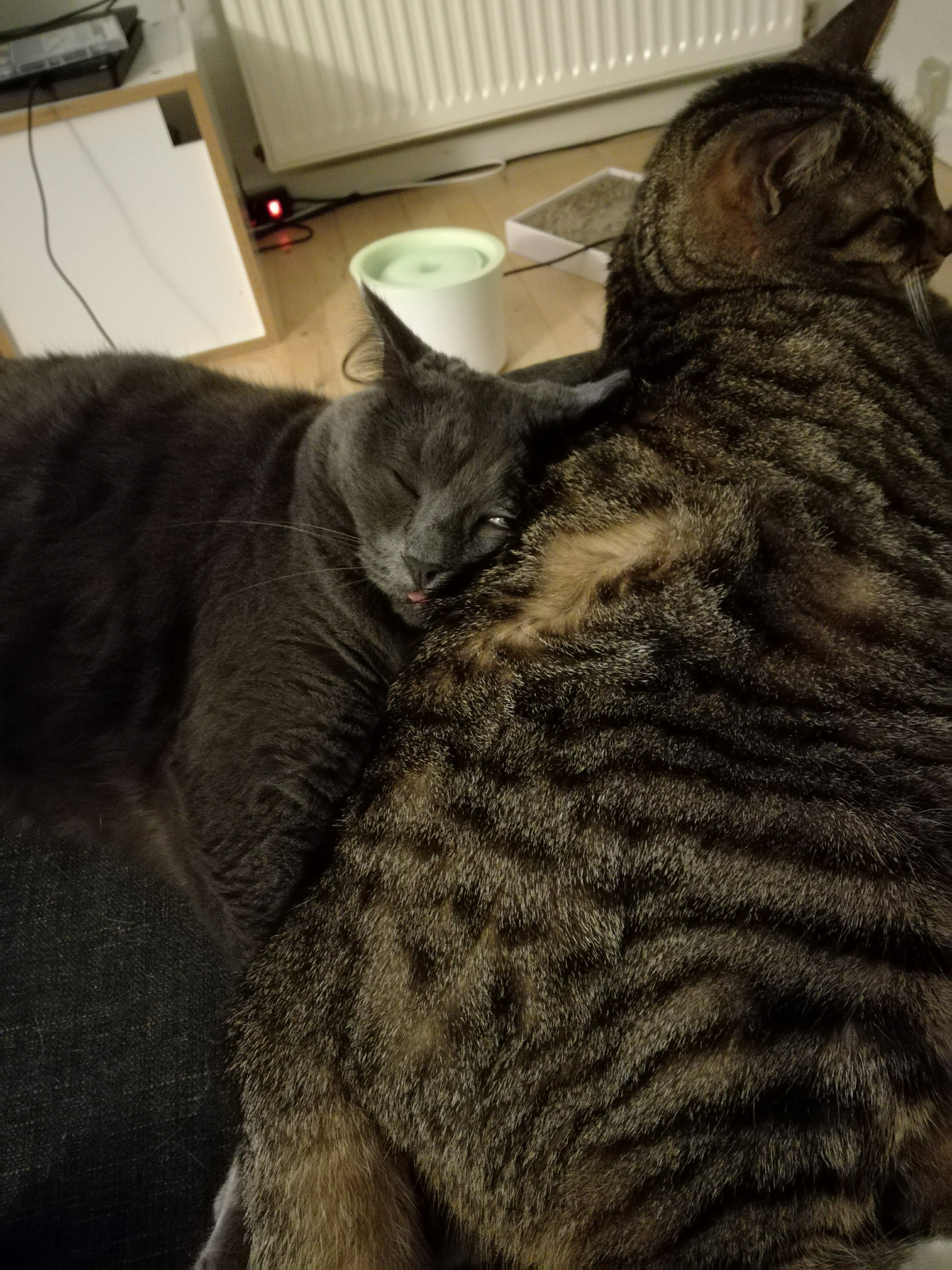 Hun efterlader et kæmpe tomrum og ligenu føltes det som om verden står stille, mens jeg prøver at forstå, at hun aldrig mere kommer og vasker på os, eller skal op og putte på mig inden vi skal sove, aldrig kommer til at brokke sig over vi er for langsomme til at finde mad, eller prøve at stikke ud i bryggerset på jagt efter spindelvæv ![]()