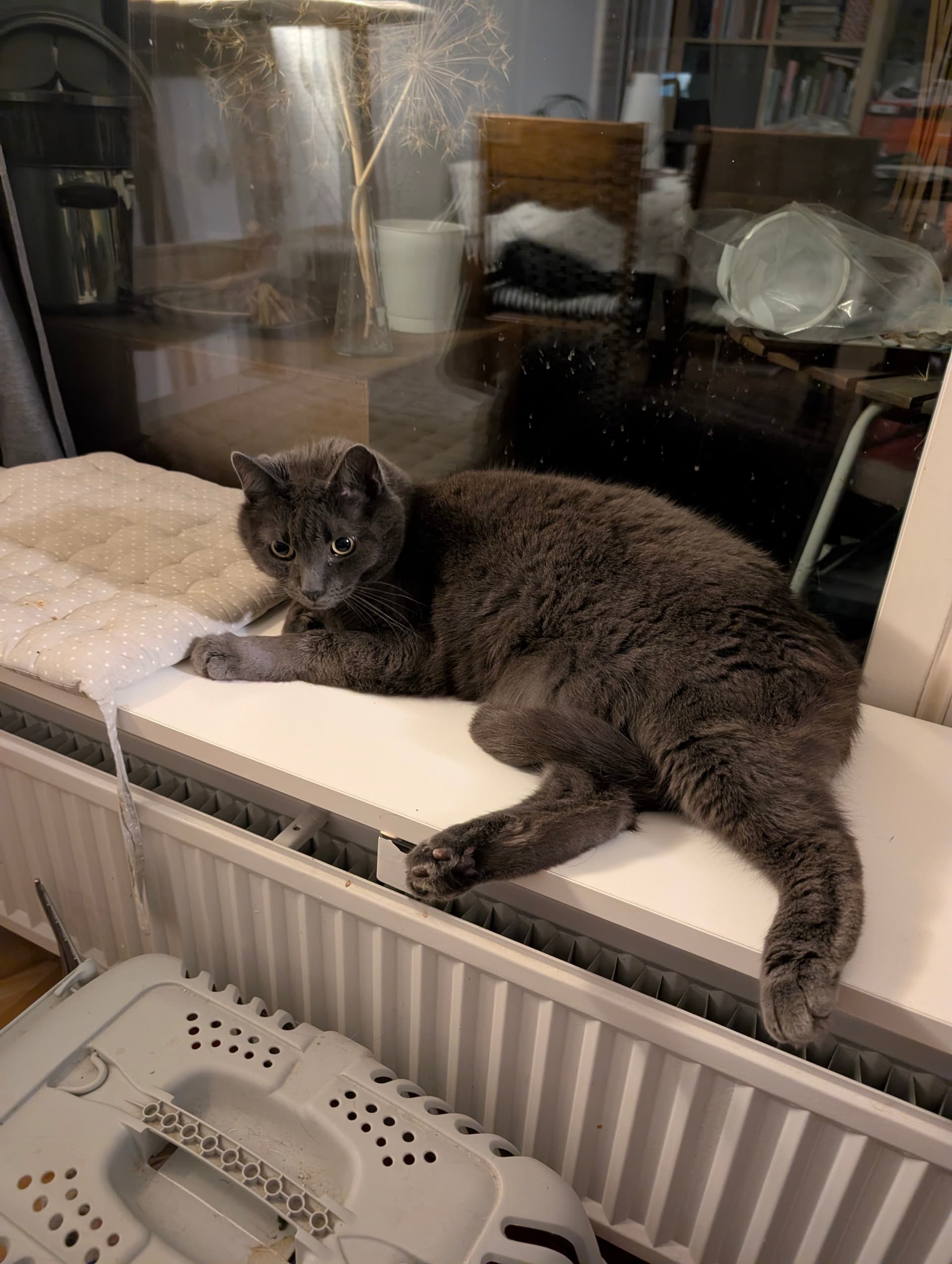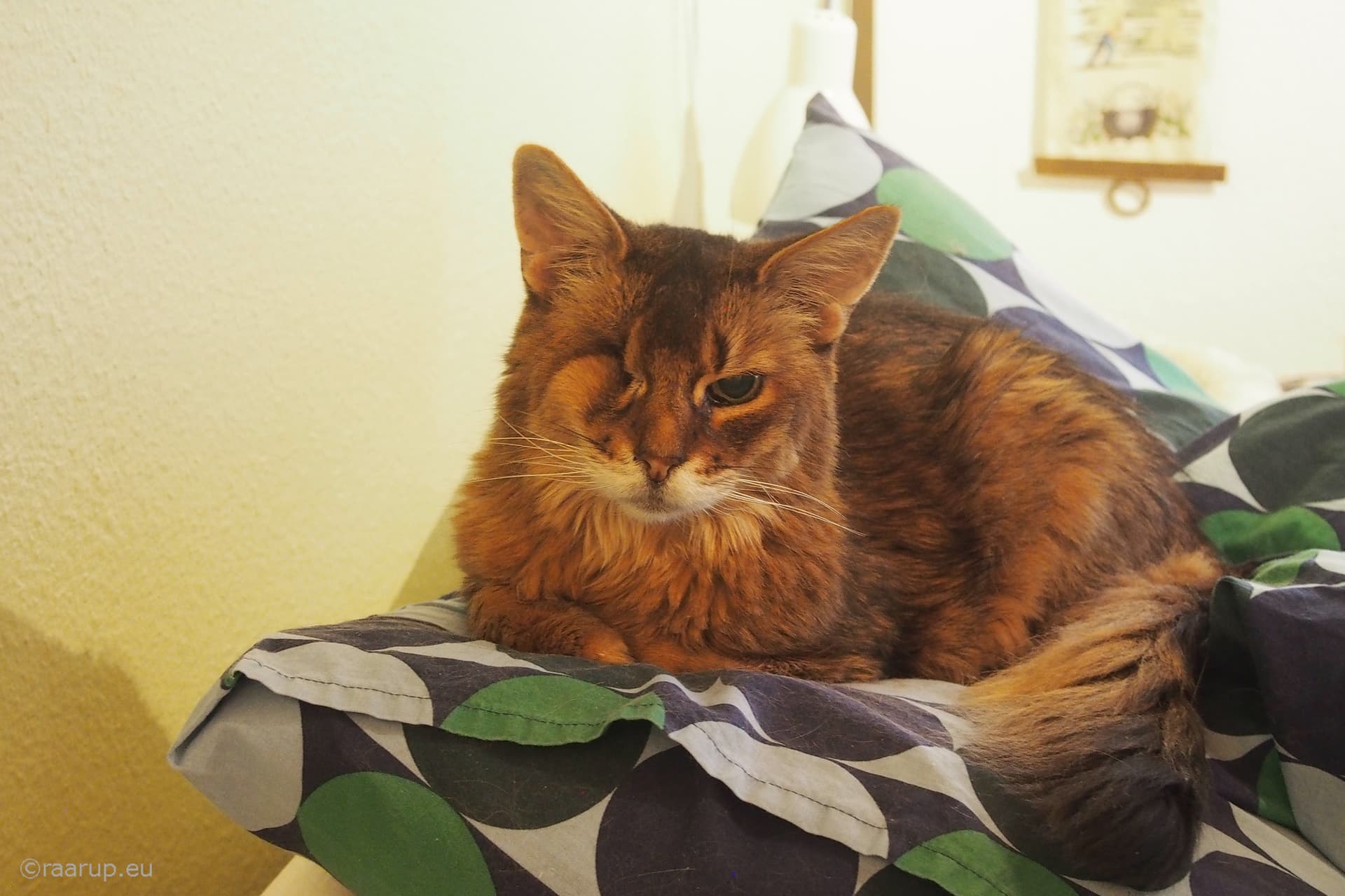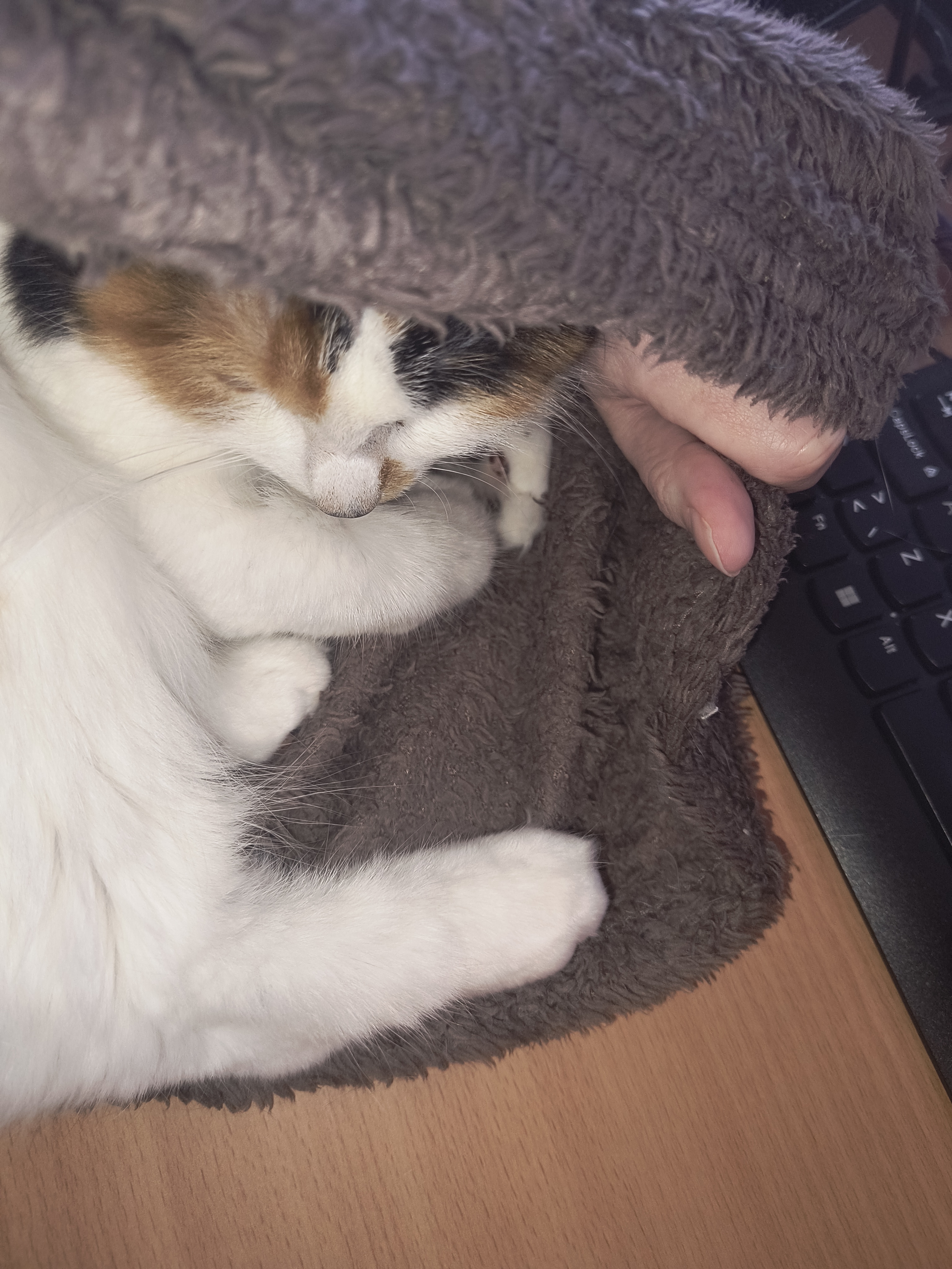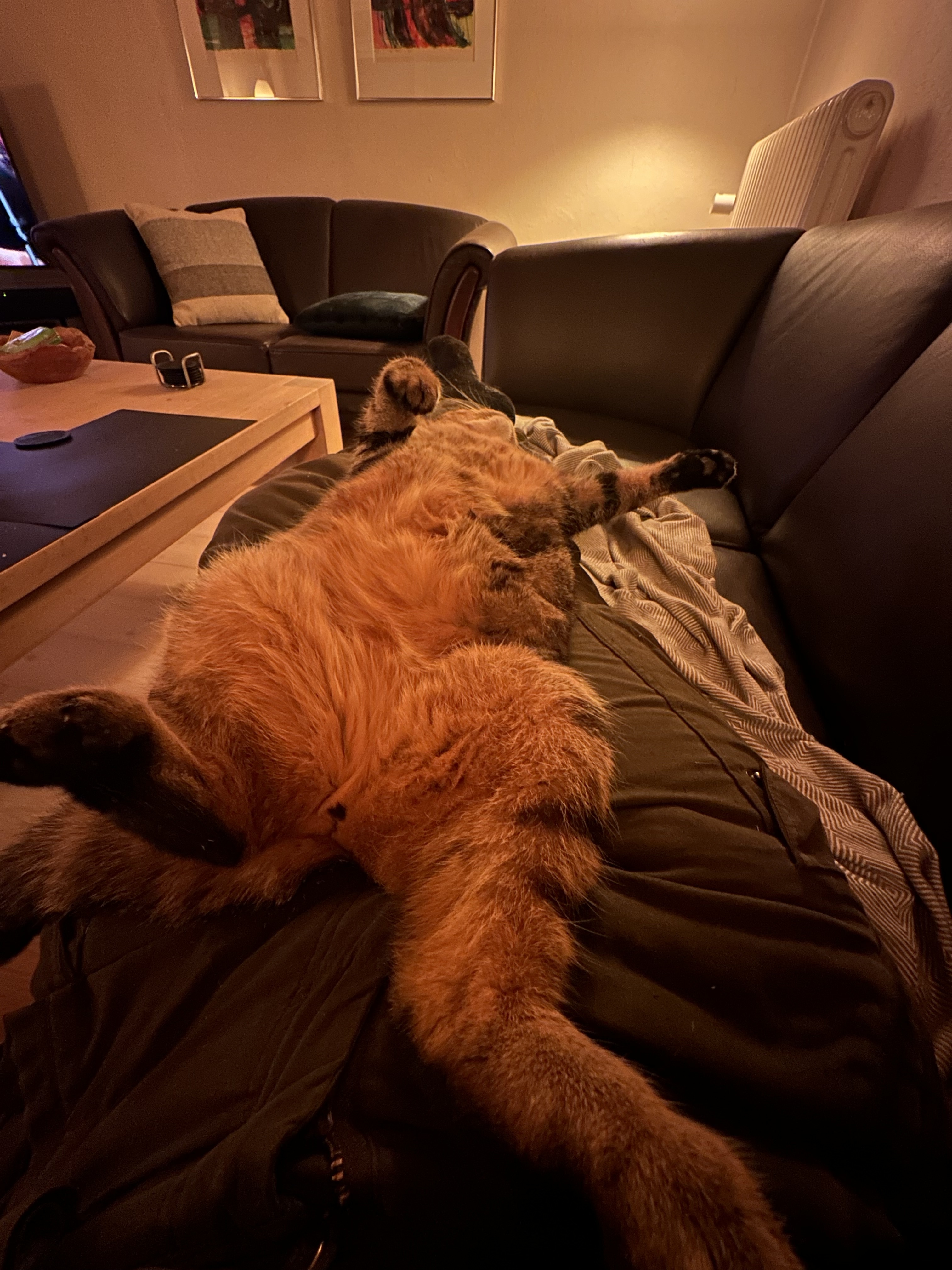 Jeg forventede Masso havde forladt tæppet, når jeg kom retur fra toilettet, men næhh nej han har besluttet sig for, at det er godt at putte under ![]()