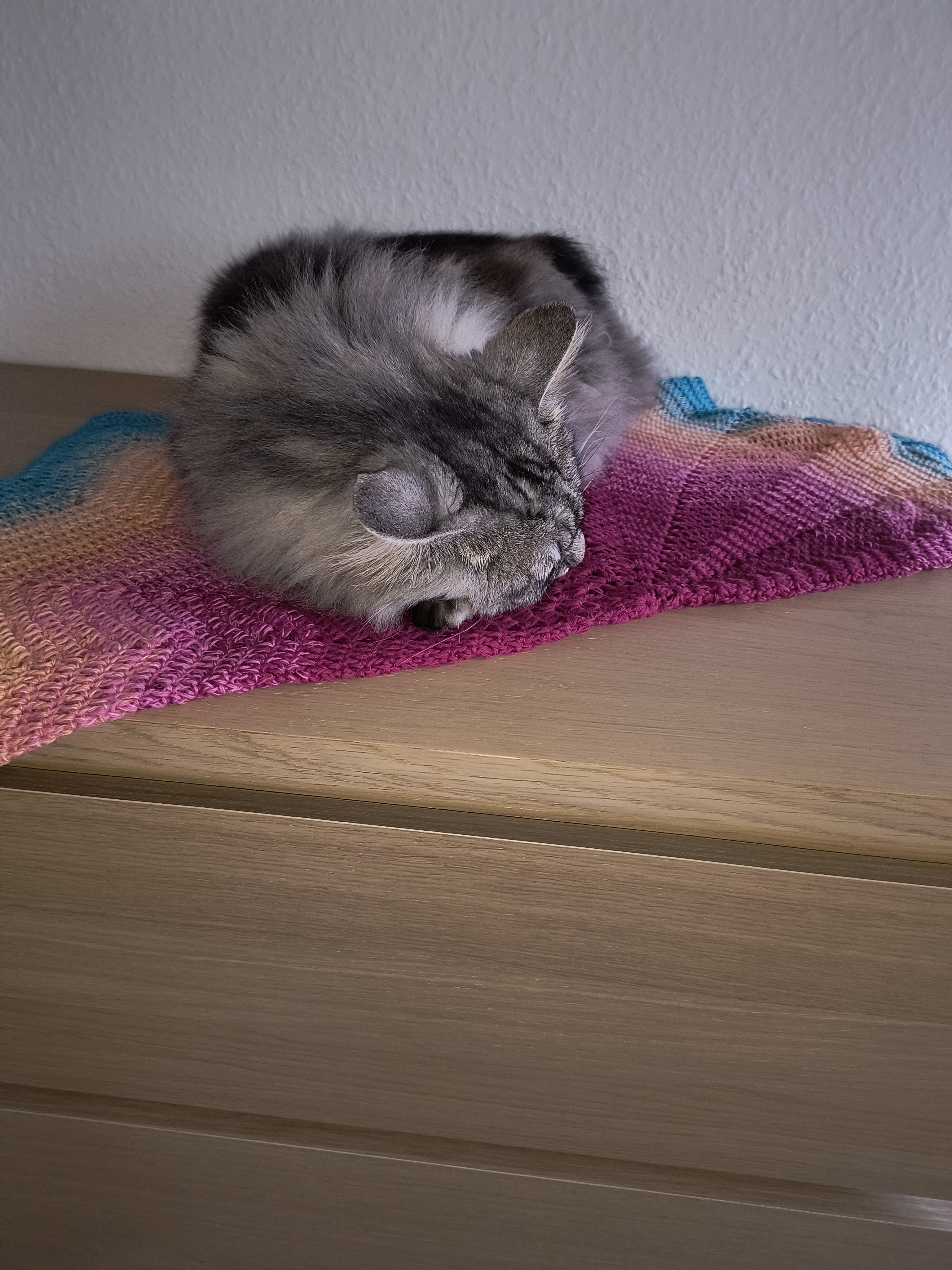 Definitionen på værd at hækle til - en stor del af natten og en god del af dagen er tilbragt med at putte på hans nye tæppe ![]()