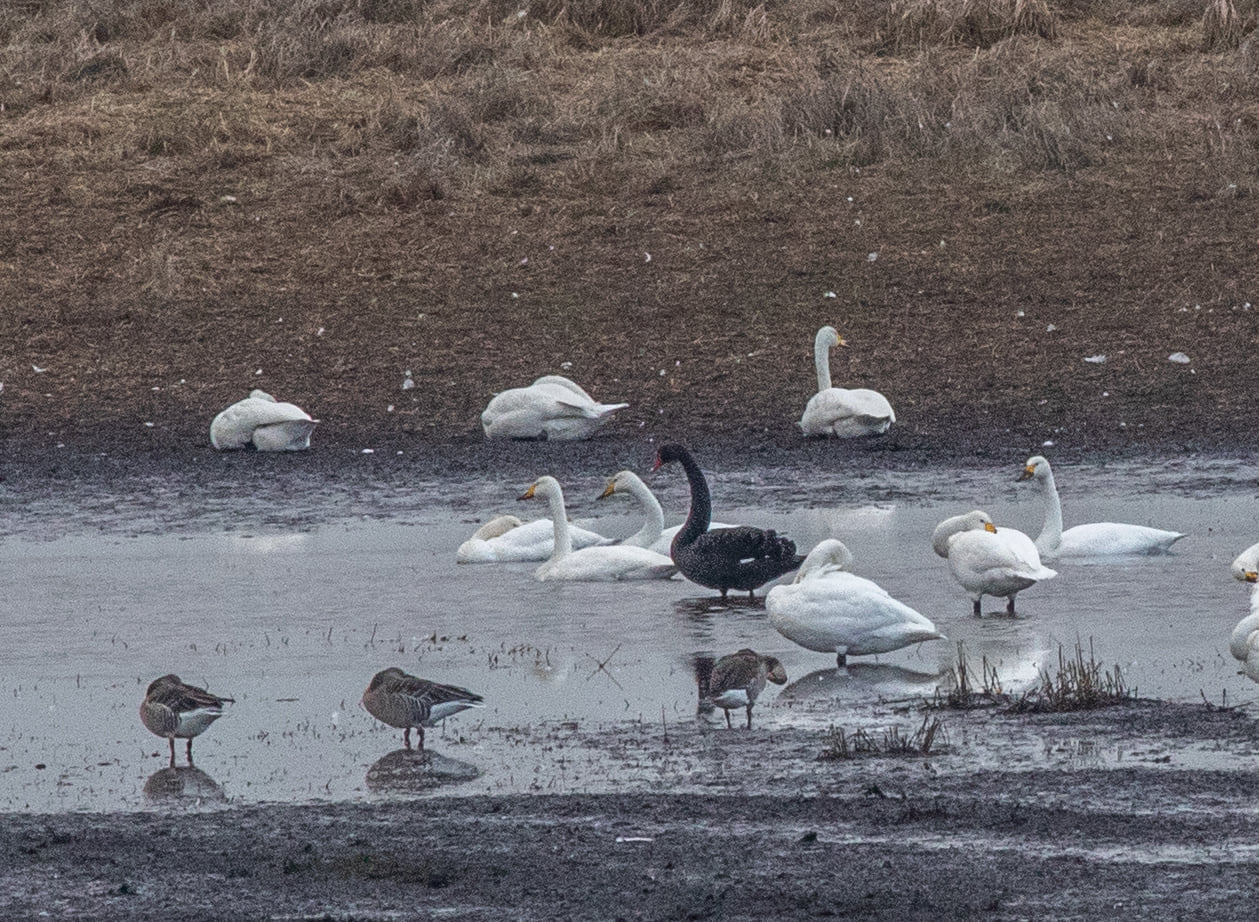 Ja, det var virkeligt sjovt at se…maaaange hvide svaner og så den helt sorte mellem dem…