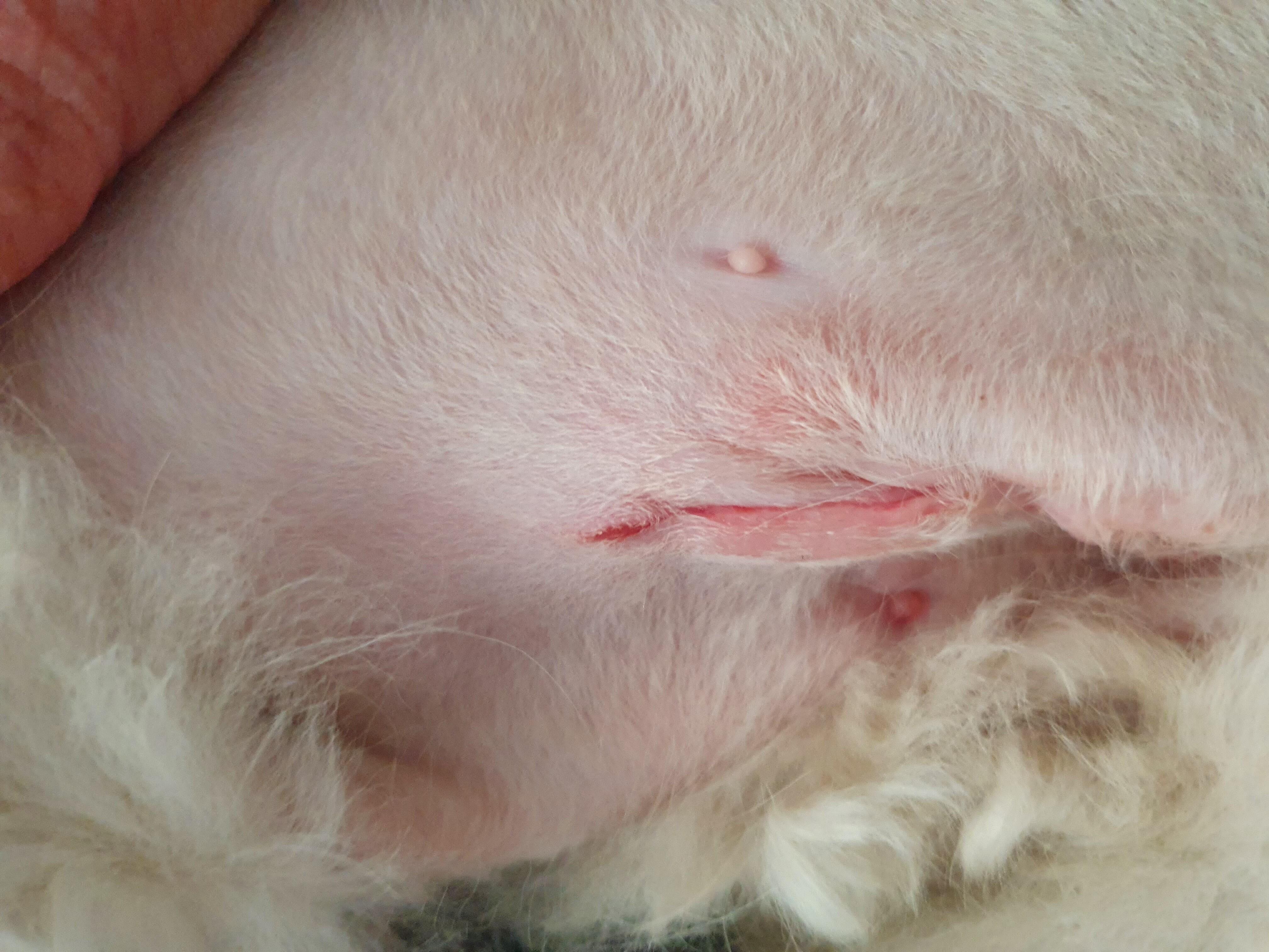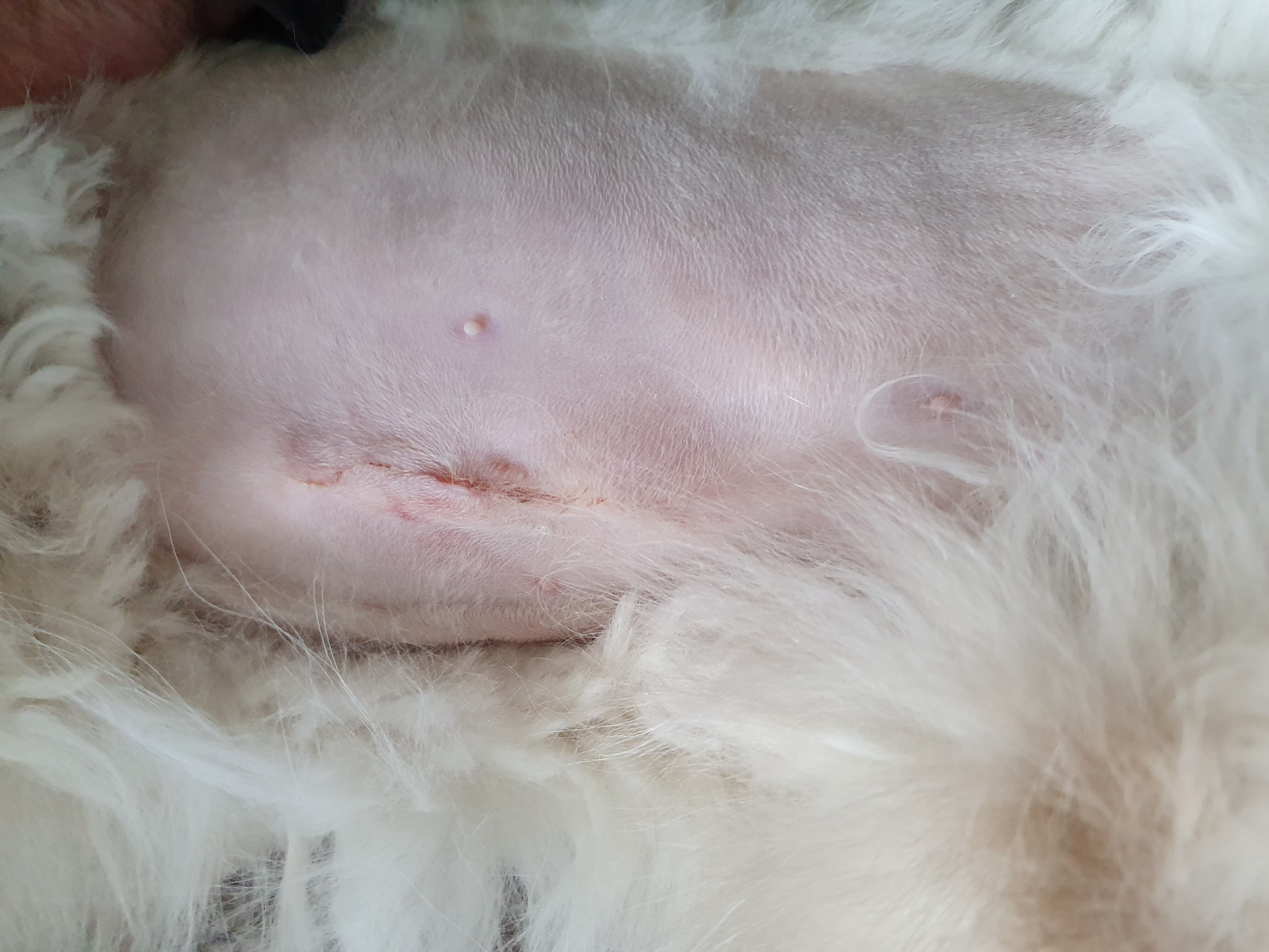 Jeg kan godt se og mærke på hende at det gør hende tilpas de to gange i dag hvor den ikke har været på, men jeg mangler is i maven når hun nærmer sig såret. Hun er syet med indvendige sting og jeg synes det ser fint ud, men ved jo ikke rigtig hvor fint det skal være