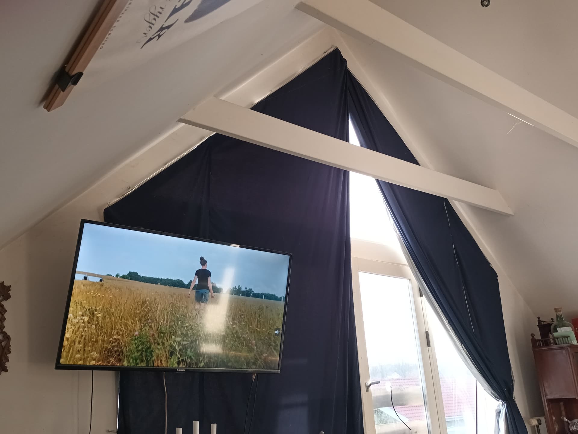 Jeg har allerede gardinerne trukket for i den ene side - delvist for at beskytte tv’et der hænger ud foran vinduet, delvist for ikke at få sol i øjnene.