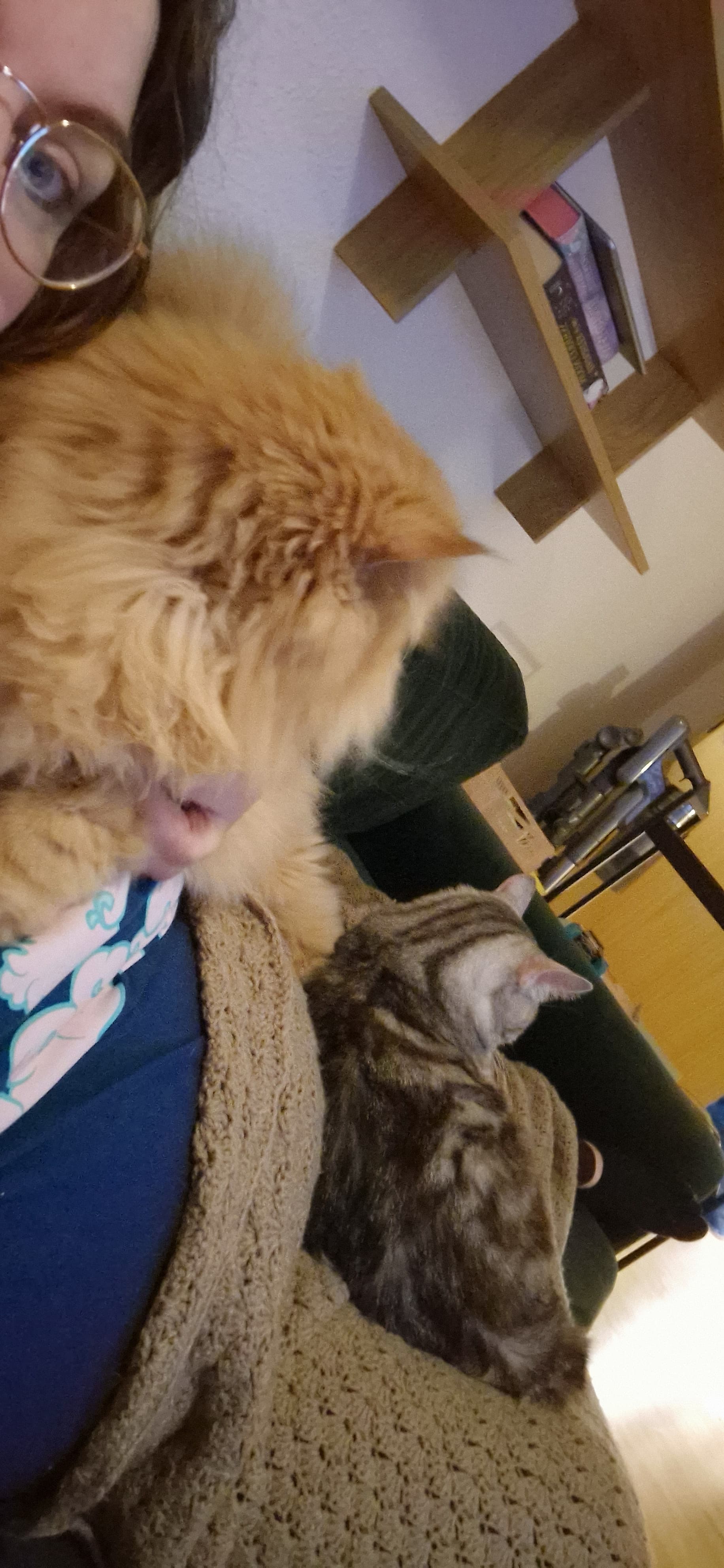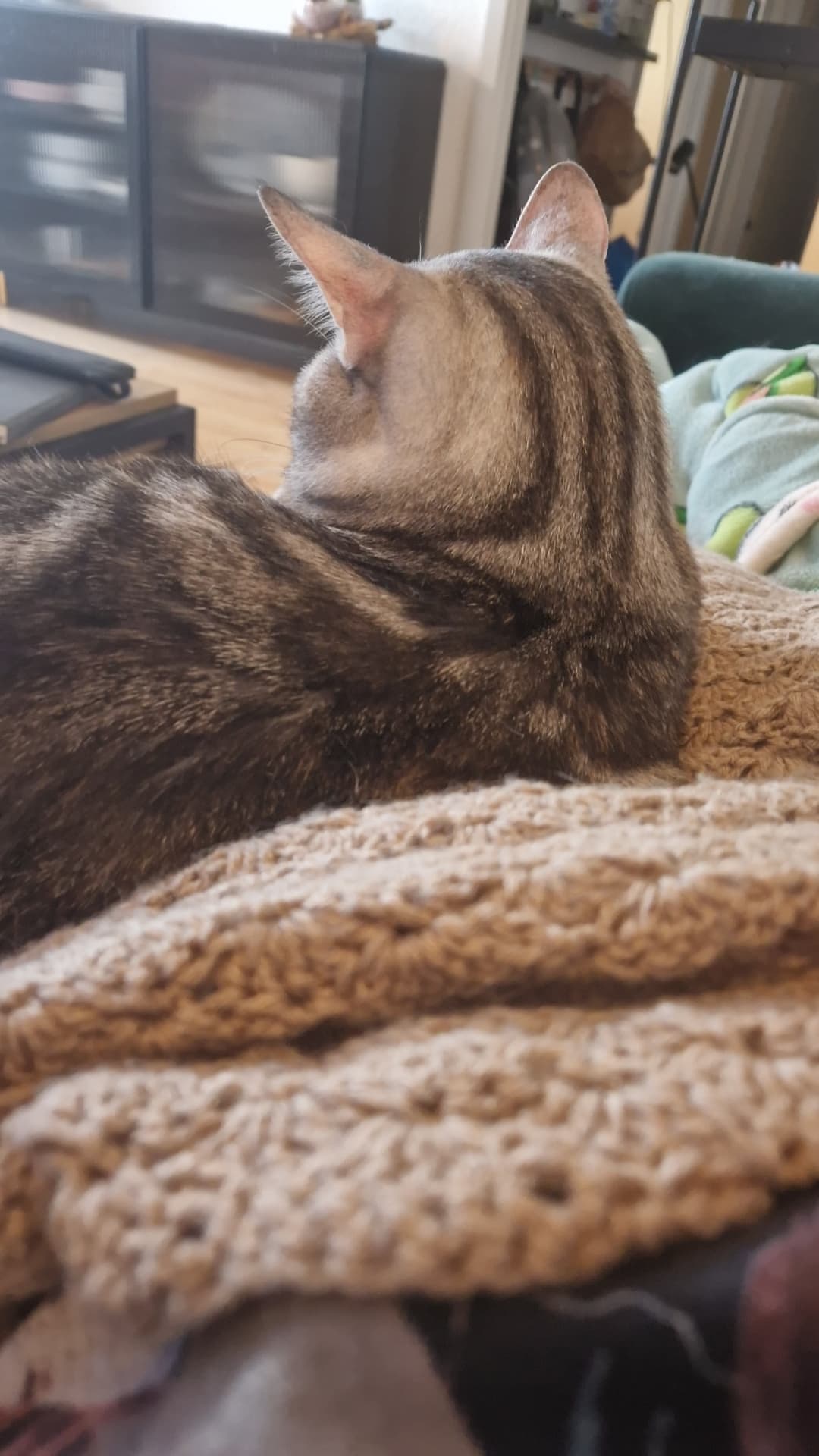 Om hun er ved siden af mig, ovenpå eller under tæppet varierer lidt, jeg blev vækket fra min lille lur, ved at hun bøvlede lidt med at kravle under tæppet og fik det trukket af mig ![]()