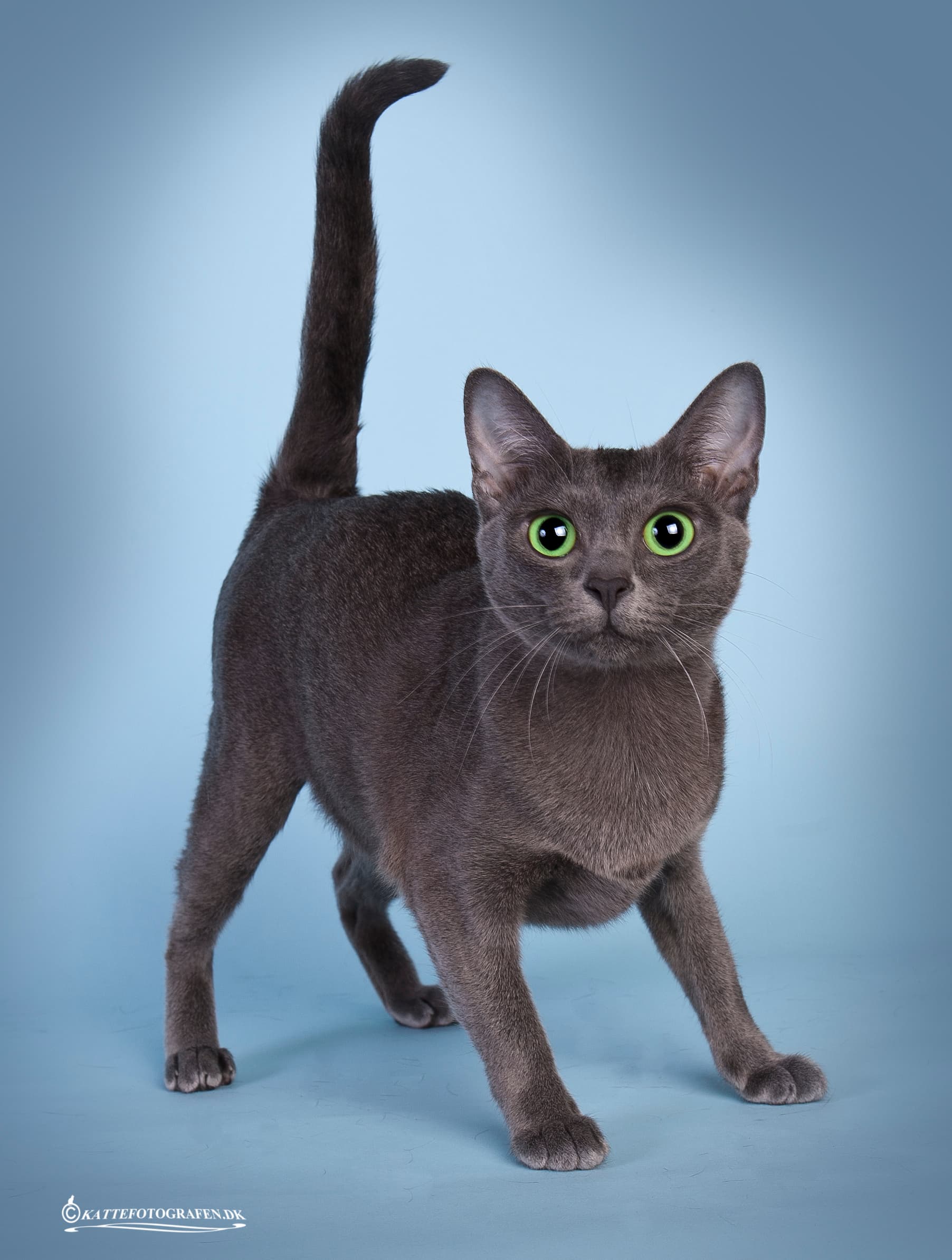 Med hovedet let på skrå, halene, med den lille svip, som kun katte kan, og en smil om munden, bare sådan let gang , stille og roligt