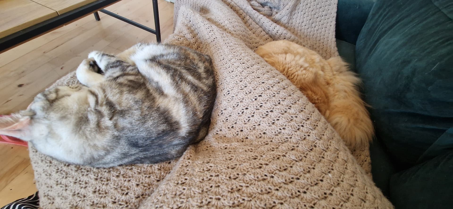 Vi har haft besøg af min far tidligere i dag, og det var åbenbart meget hårdt. Begge katte gav udtryk for at vi skulle have puttetid på sofaen og kort tid efter sov de begge tungt.