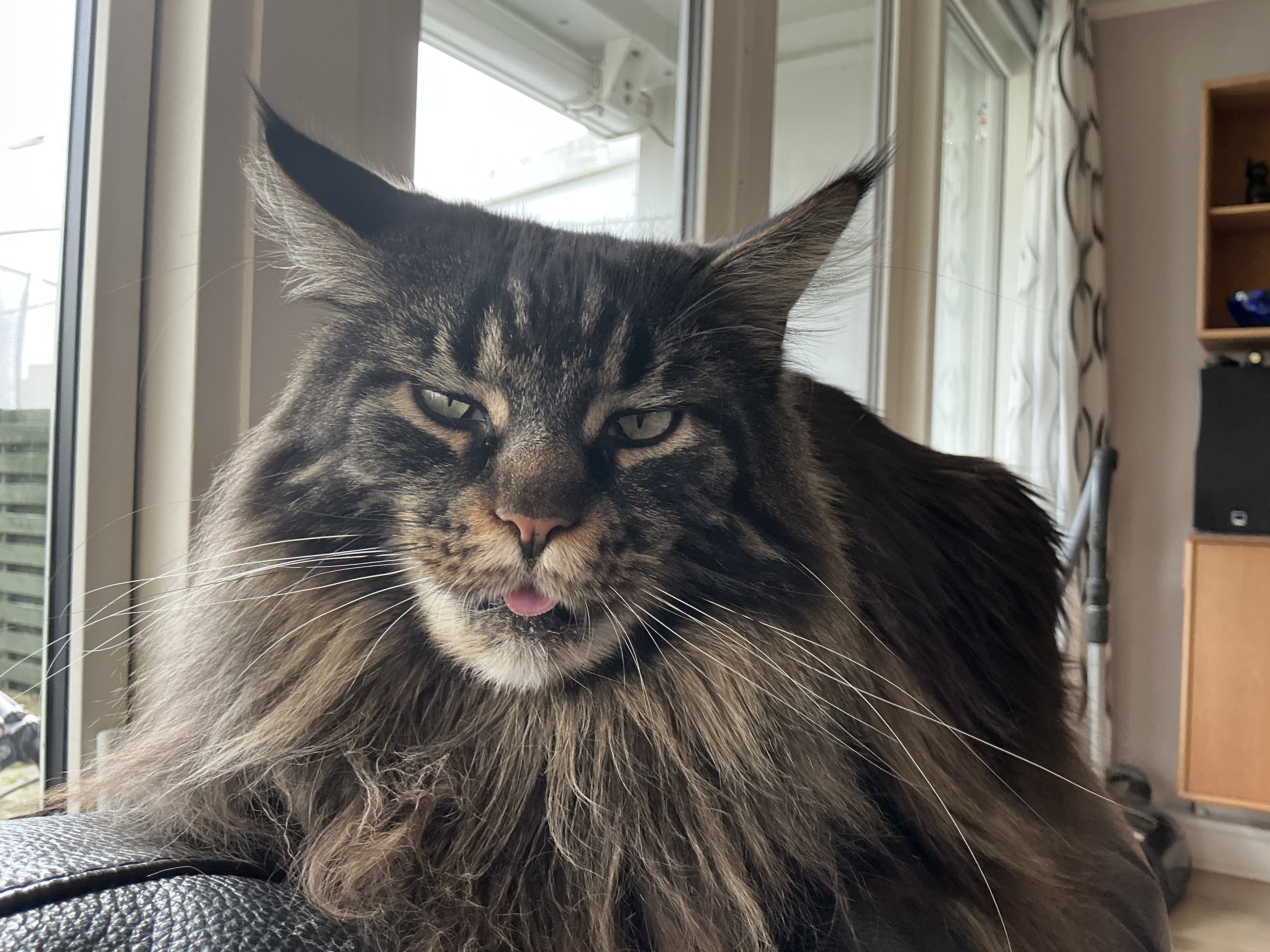 Det er Lady, vores Maine Coon, hende der altid har tungen stikkende lidt ud af munden, tænker det er sådan hun trækker vejret