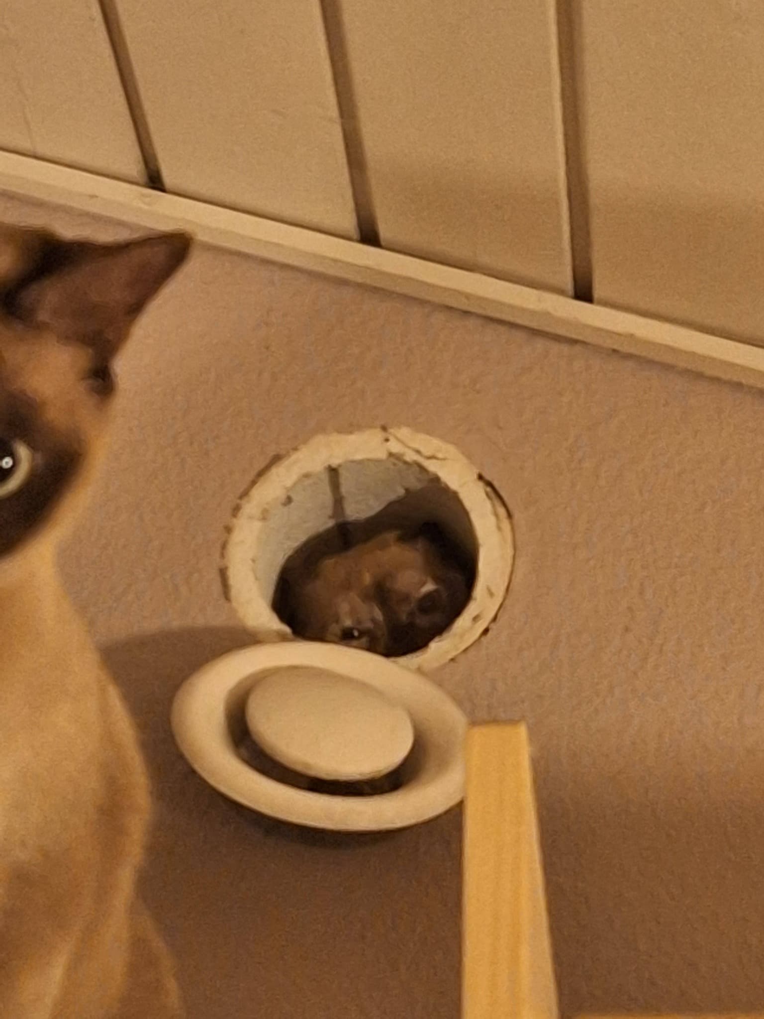 Halfbrain titter ud af åbningen til det gamle genvexrør, mens hendes mor sidder med ryggen til og tydeligt signalerer, at det er ikke hendes ansvar, at hun er blevet sådan ![]()