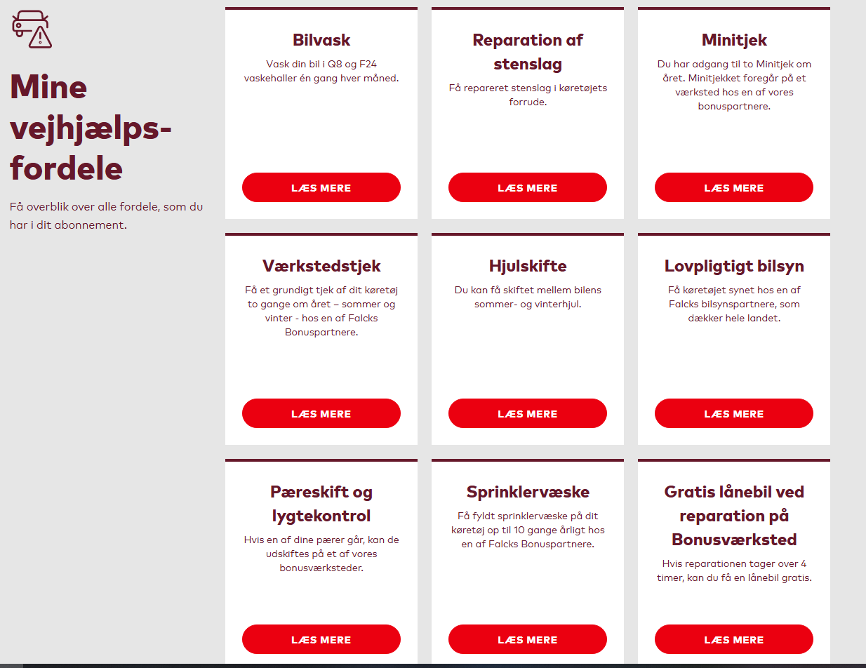 Jeg kan ikke se, at der på nogen af Falck-abonnementerne er gratis hjulskift? Det var der engang. Engang var et Falck-abonnement i sig selv en no brainer med alt det, man fik for pengene, men det lavede de grundigt om for et par år siden.