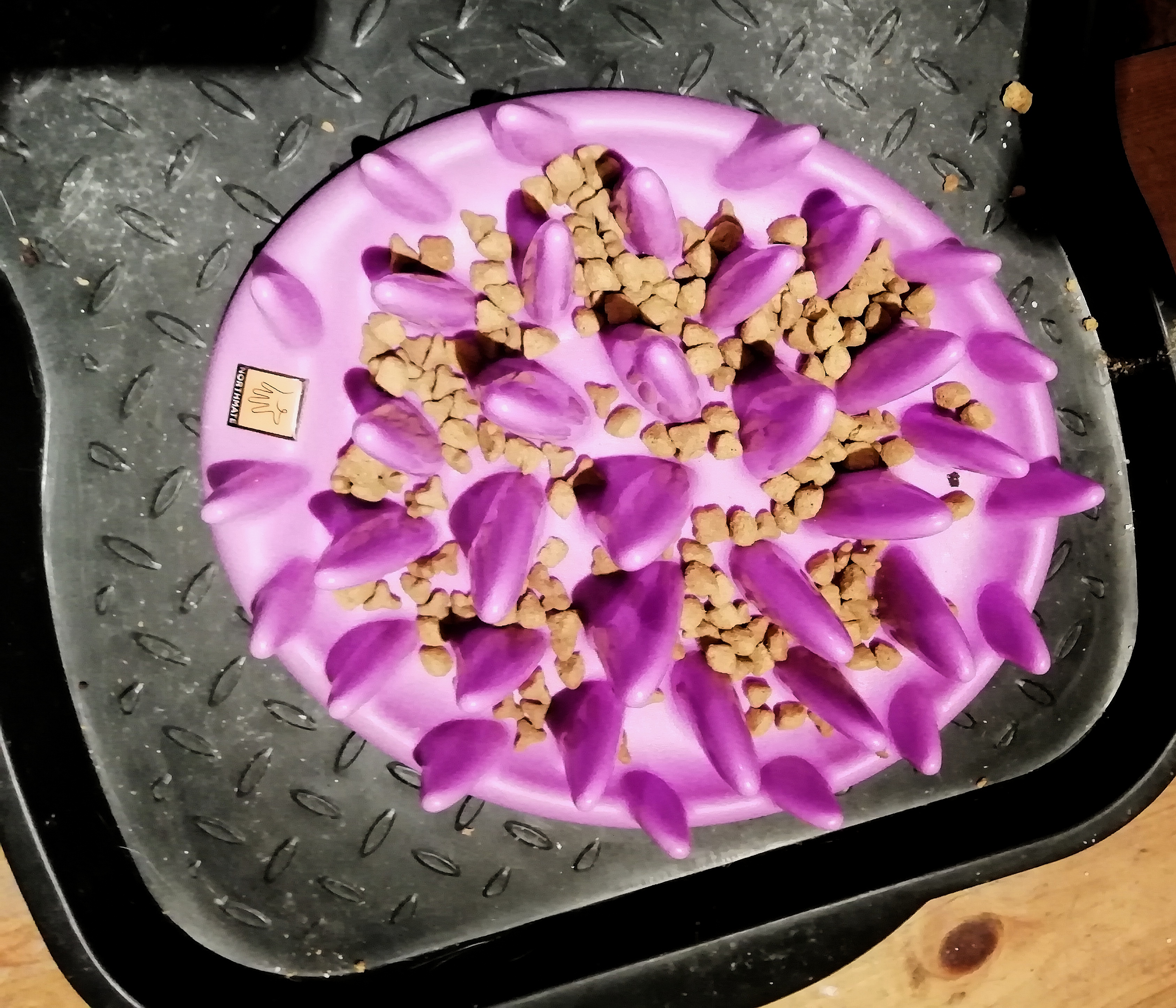 Nu foretrækker Manse at spise med pote - uanset om maden serveres på tallerken eller i aktivitets-tumling - så jeg faktisk ku’ godt ha’ mine tvivl om, hvorvidt det ville ha’ nogen nævneværdig effekt her på matriklen… ![]()