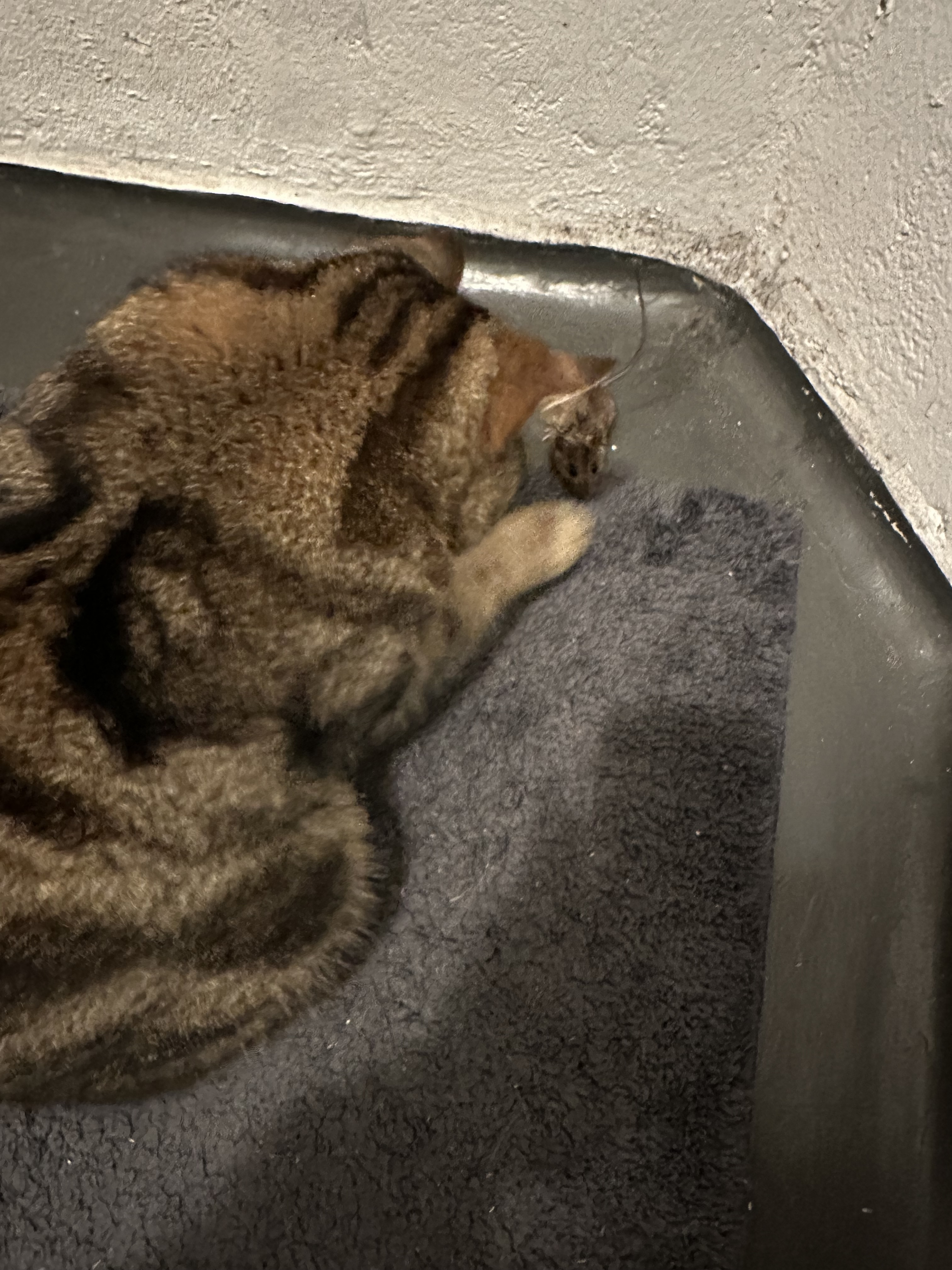 Det var noget i den retning, jeg håbede på, for med to katte der bla. færdes på (pt. mudrede) marker, og samtidig løber ind og ud langt oftere på denne årstid, vil selv bare en let overtørring være en klar forbedring.