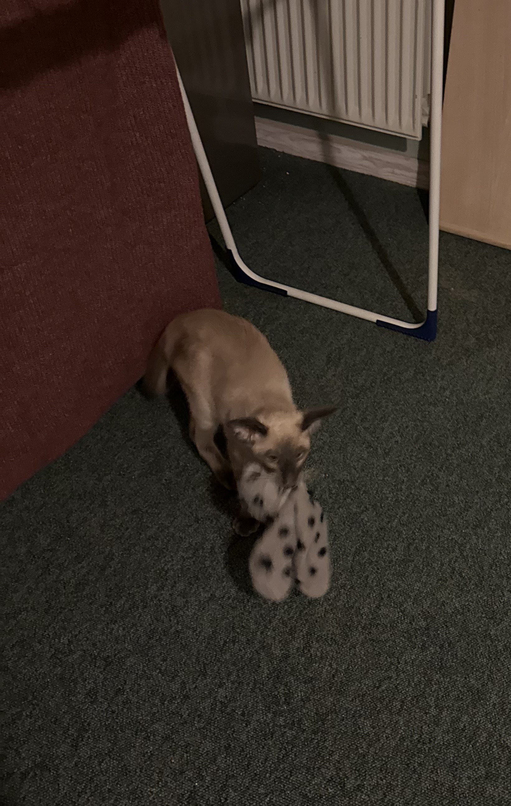 Han kom i bad og efterfølgende gav jeg mig til at pakke. Det var meget vigtigere at rende med mine sokker end at slikke sig tør ![]()