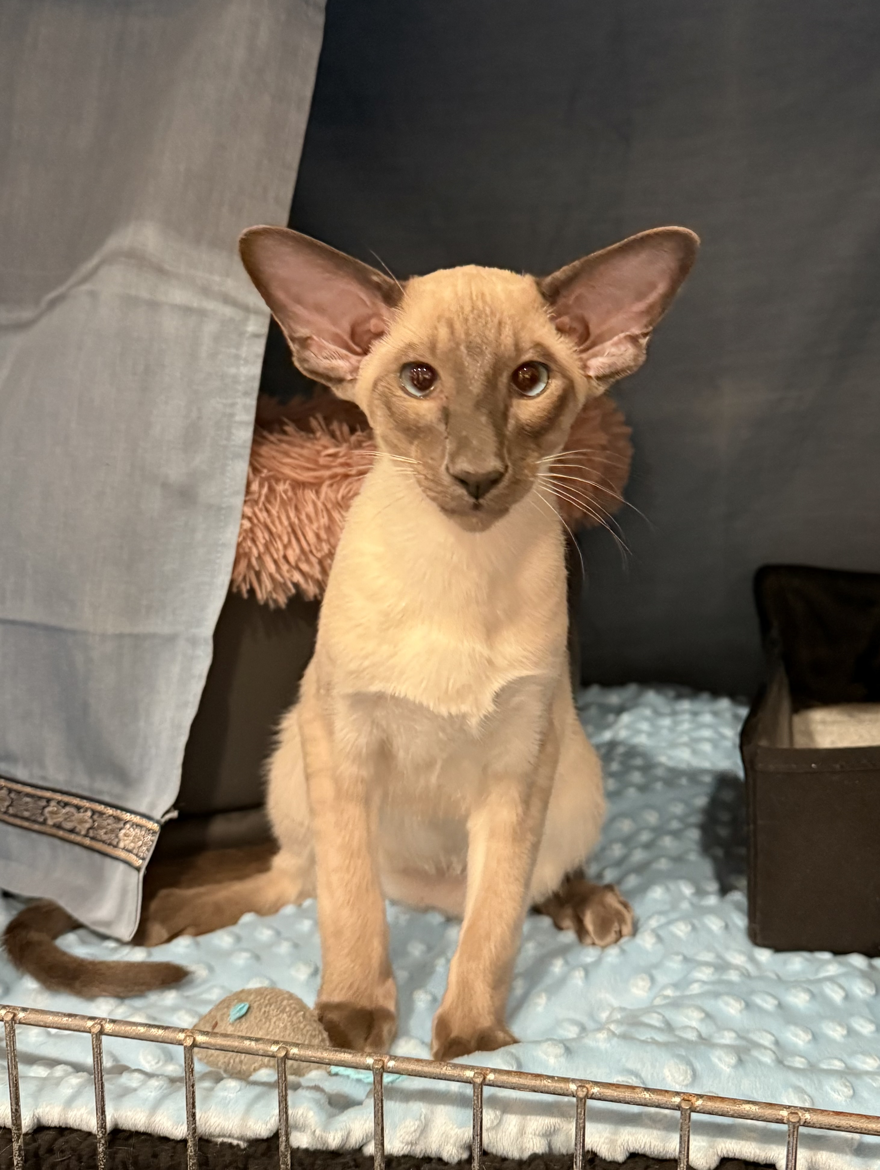 Han (og vi) har hygget os, han har været nysgerrig og snakkende. Hans første tur ved dommer var ved Stoa, og hun er bare fantastisk til at starte katte ![]()