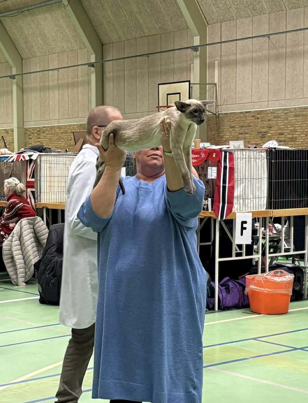 Nå men… Både lørdag og søndag fik han super flok kritik af dommerne, men som forventet er han altså for mørk på kroppen til sin alder Så han blev begge dage slået helt ærligt og redeligt af pænere katte