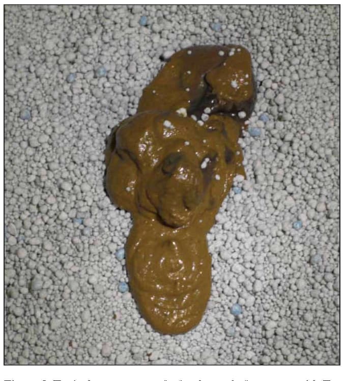 Nu tør jeg ikke sige om den ser ud på samme måde når katten er inficeret med cryptosporidium, men det er et klassebillede på en TF afføring … og giardia er hen i noget af det samme. Som allerede foreslået, så kunne det måske være smart med en test mere. Eller måske igen om noget tid, hvis ikke afføringen ændrer konsistens/udseende.