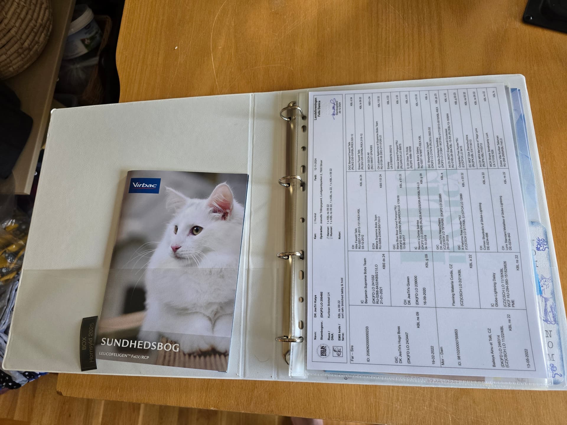 Jeg bruger denne, som vi har med på udstillinger, det er kun en kopi af kattens stamtavler.
