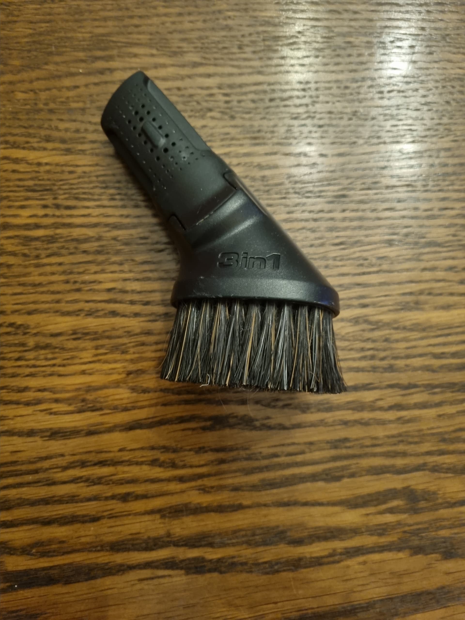 Der følger et samlet stykke tilbehør med, som så kan åbnes/lukkes til 2 forsk. børstehover.