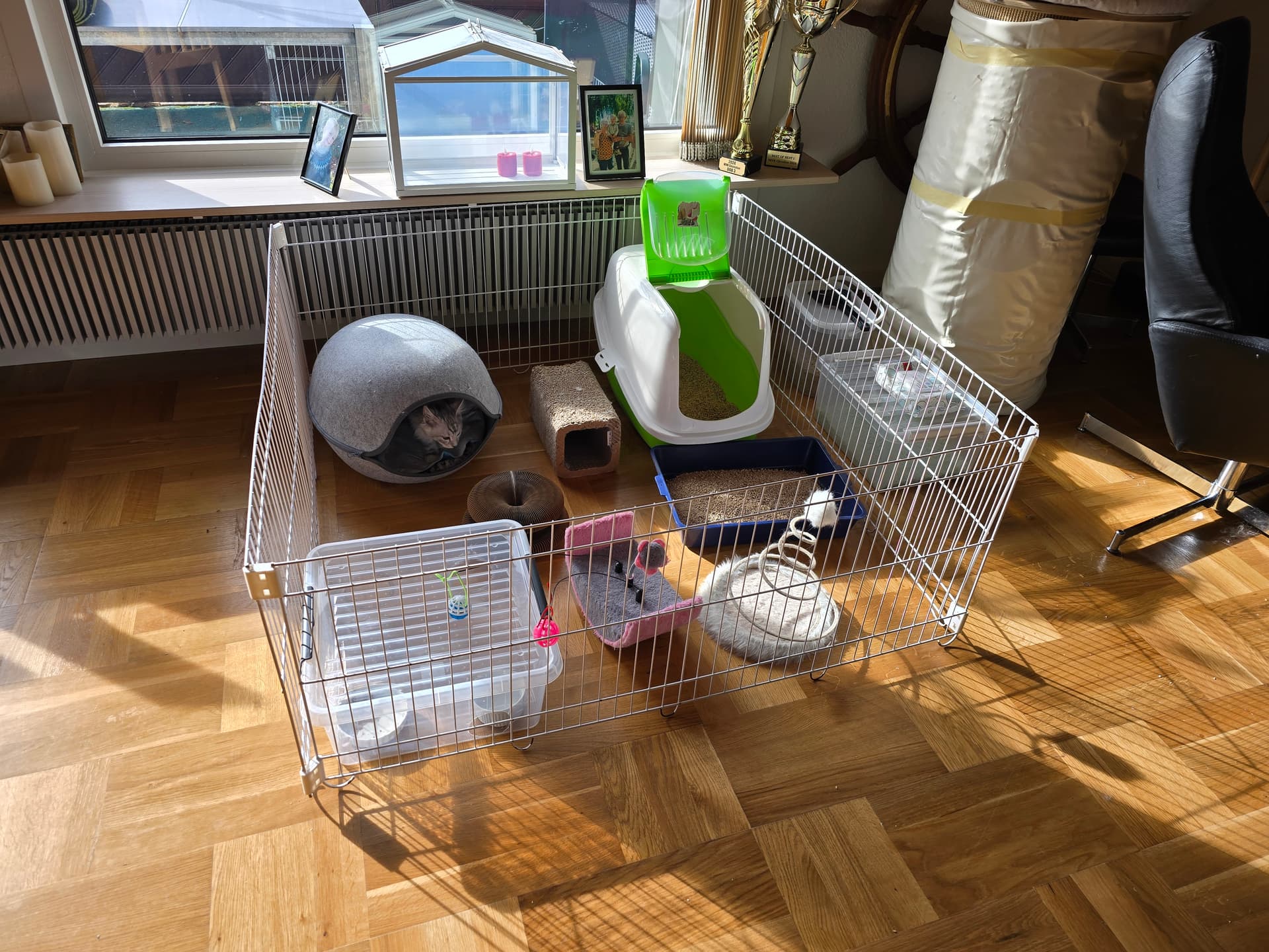 Vores erfaring er, at får de for hurtig for meget plads, så når de ikke potten i tide og vi har uheld. og har de først fået gang i at pisse i et hjørne, så er de sværre at få renlige.