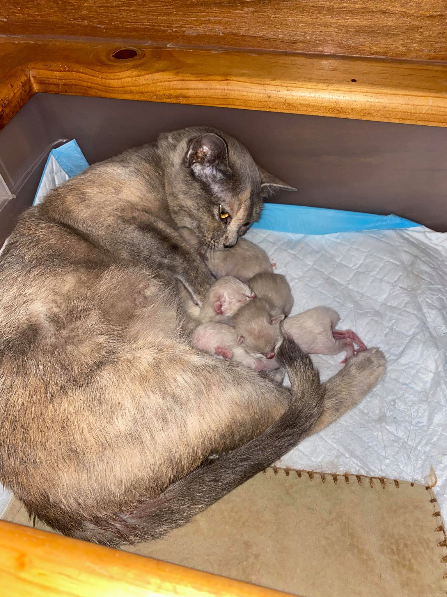 Og man kan ikke klage på avlspotentialet i den linje - 5 killinger født på 30 minutter! Ejeren havde nærmest skulle stå med en baseballhandske for at gribe dem, da de blev spyttet ud