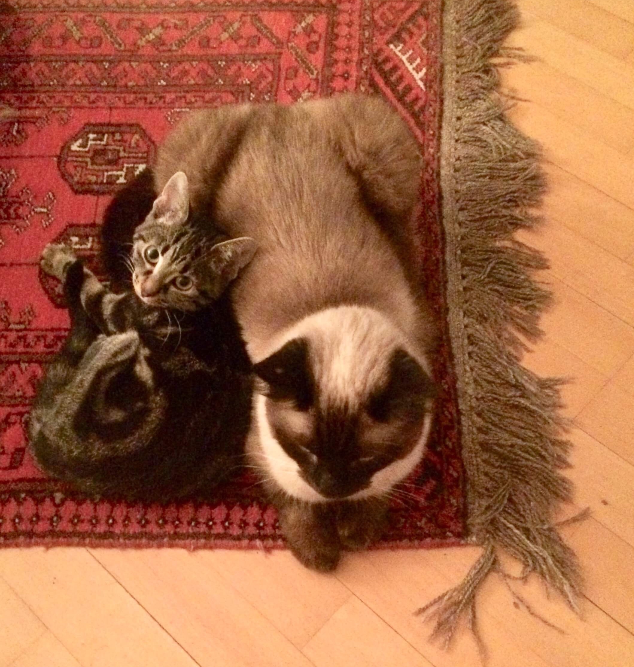 Har et lille tæppe, jeg bruger når vi træner – så snart de ser det kommer de