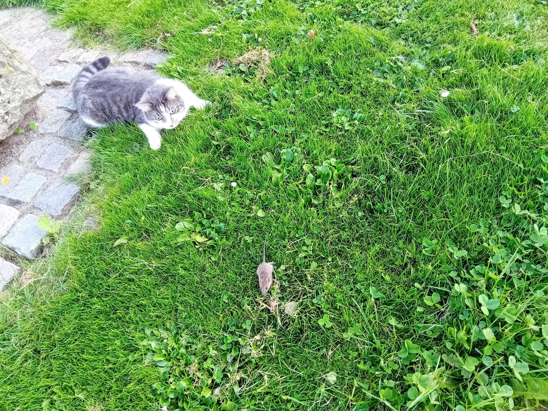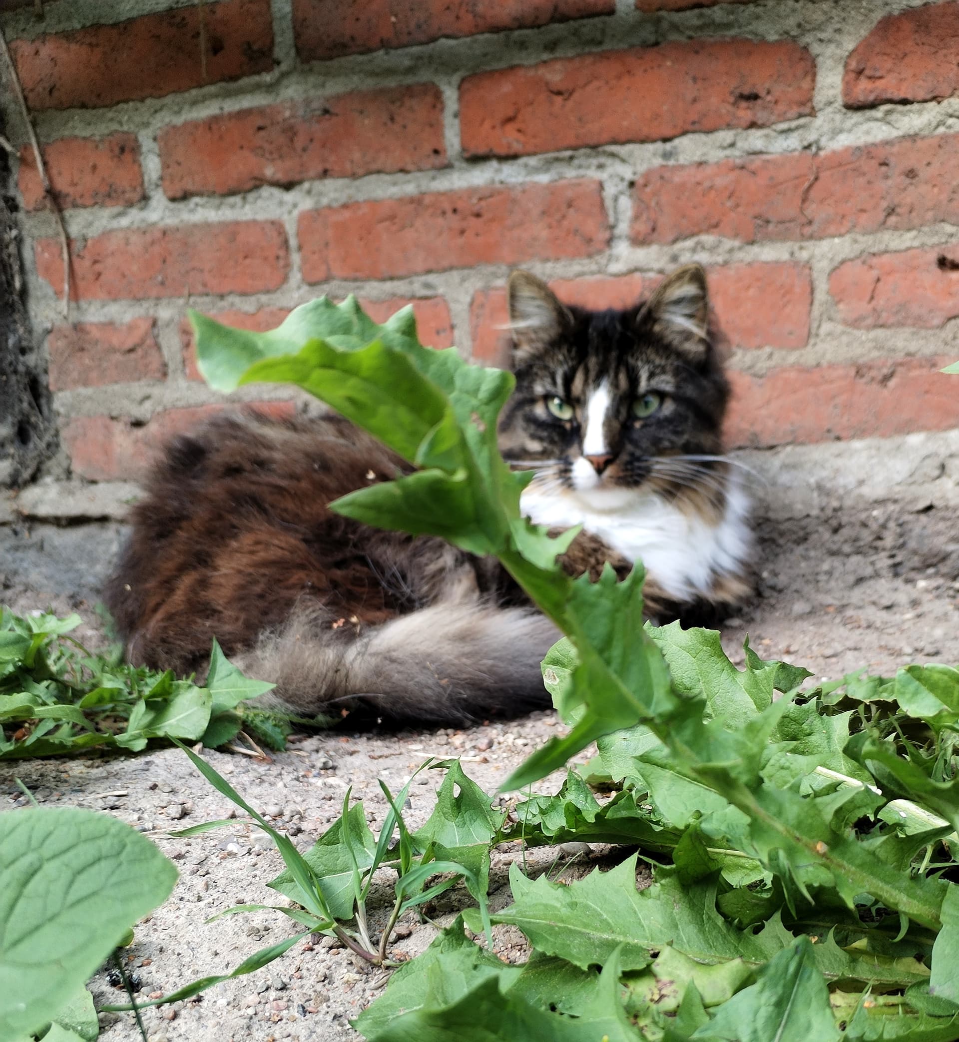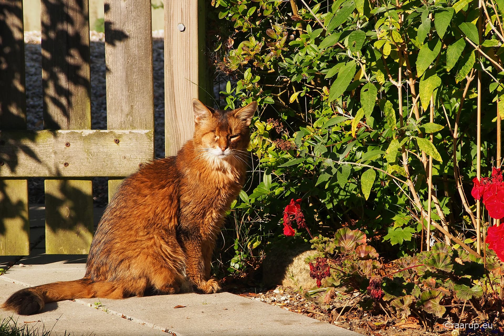 Min lokale fritløbende misseven nyder lidt nus i sensommersolen. Jeg kalder den Fister. H*n kom hen til bilen da jeg kom hjem i dag. Jeg havde åbnet døren på klem og sad og lyttede til slutningen af en Podcast da jeg pludselig så den stikke snuden ind. Så jeg lod podcast være podcast og gik ud og snakkede med min ven. Hvis jeg ender med at flytte herfra kommer jeg sgu til at savne Fister.