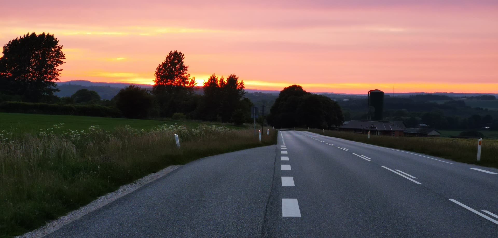 I dag har jeg gået tur i Sondrup plantage med en ven. Bagefter var hos min bror og hans mand og da jeg kørte hjem fik jeg et billede af solnedgangen.