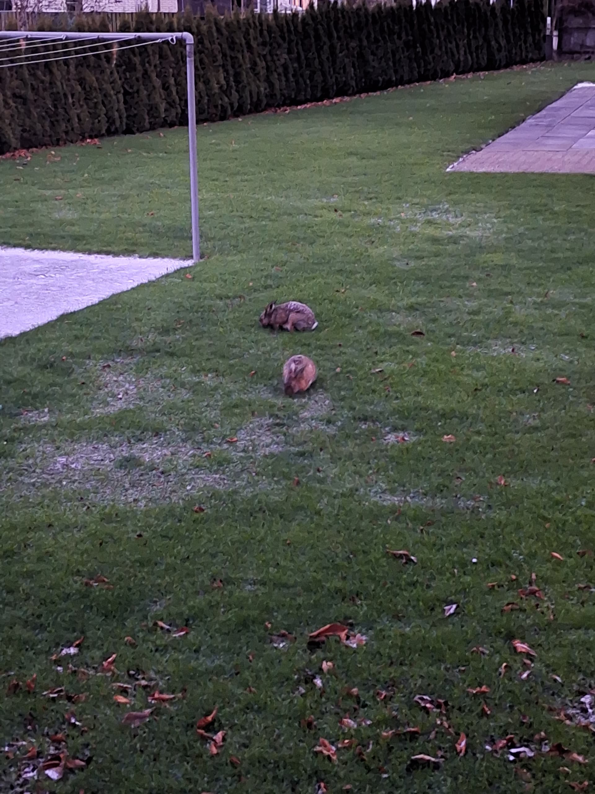 Den på fliserne gik så op på græsset og tættere på den anden ![]()